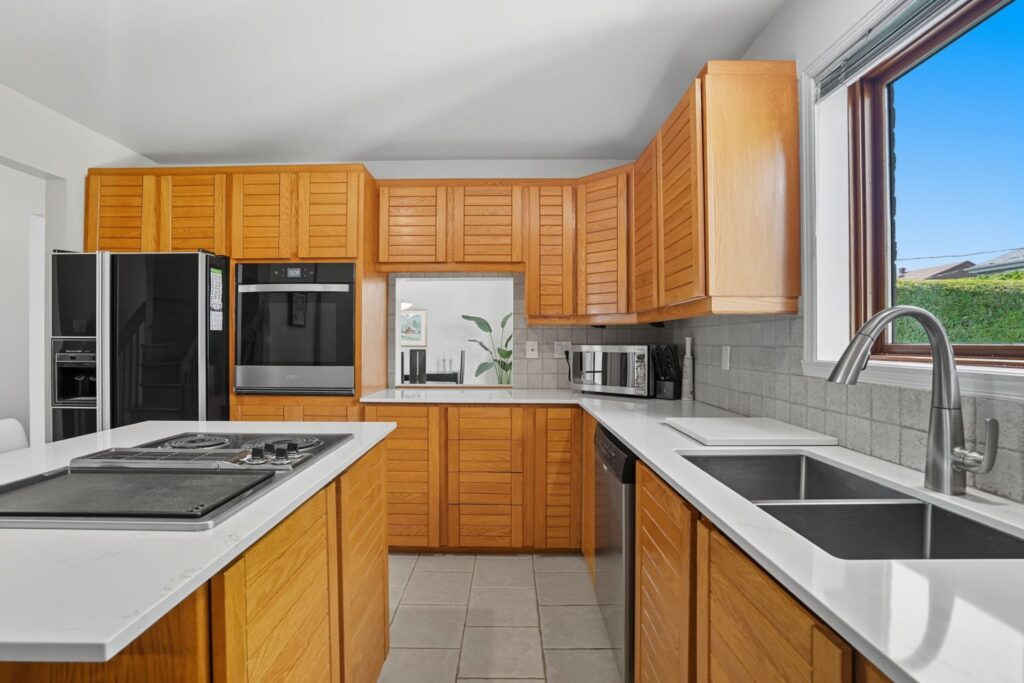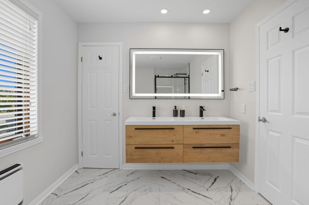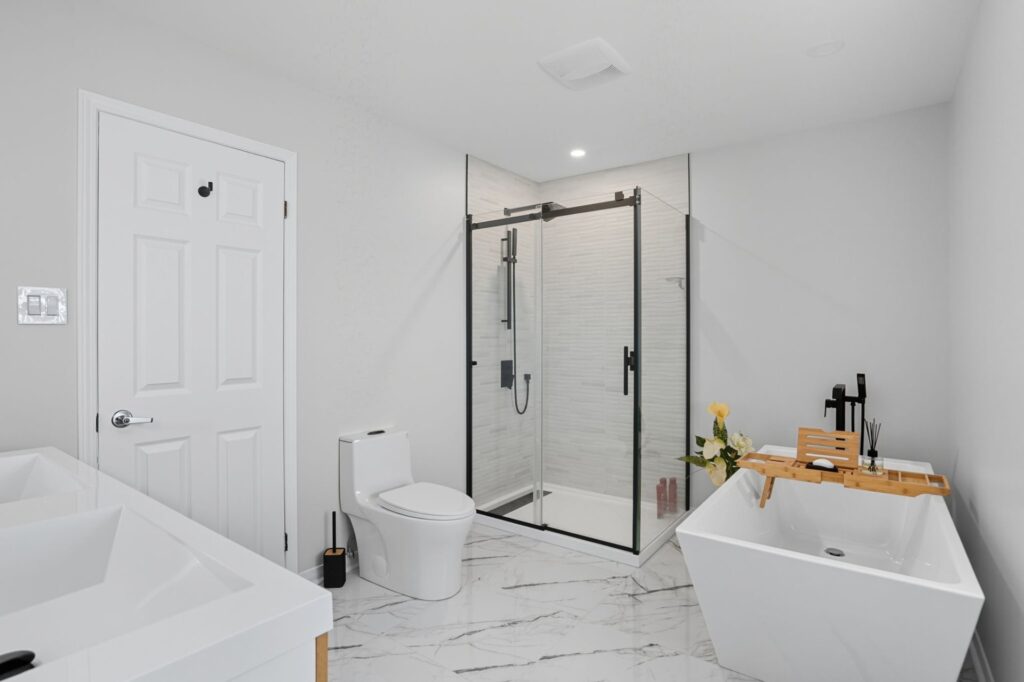 Upstairs, you’ll find three comfortable bedrooms, including the primary suite with a beautifully renovated ensuite bathroom featuring a freestanding tub, glass shower, and double sinks–perfect for everyday family comfort.