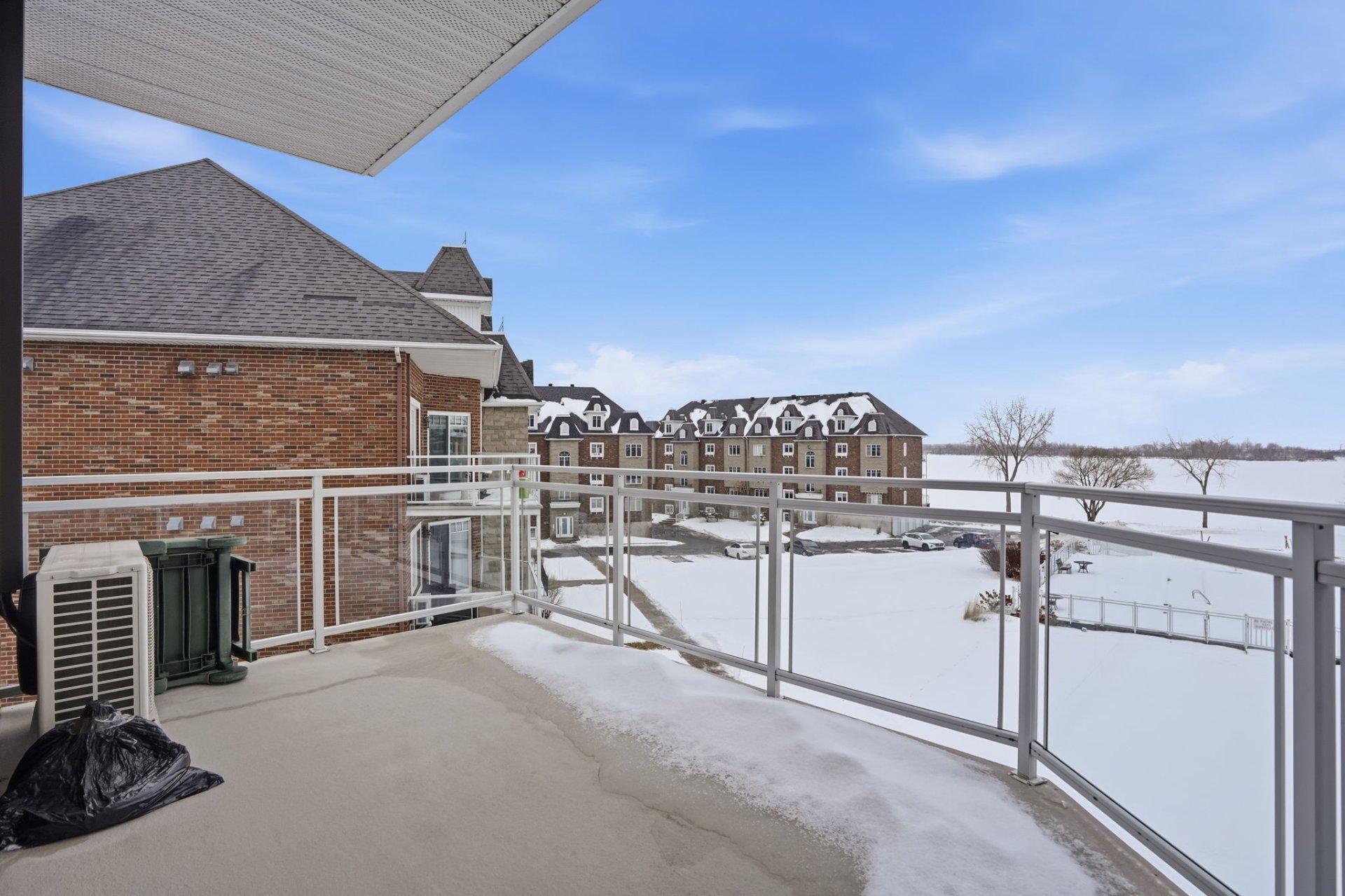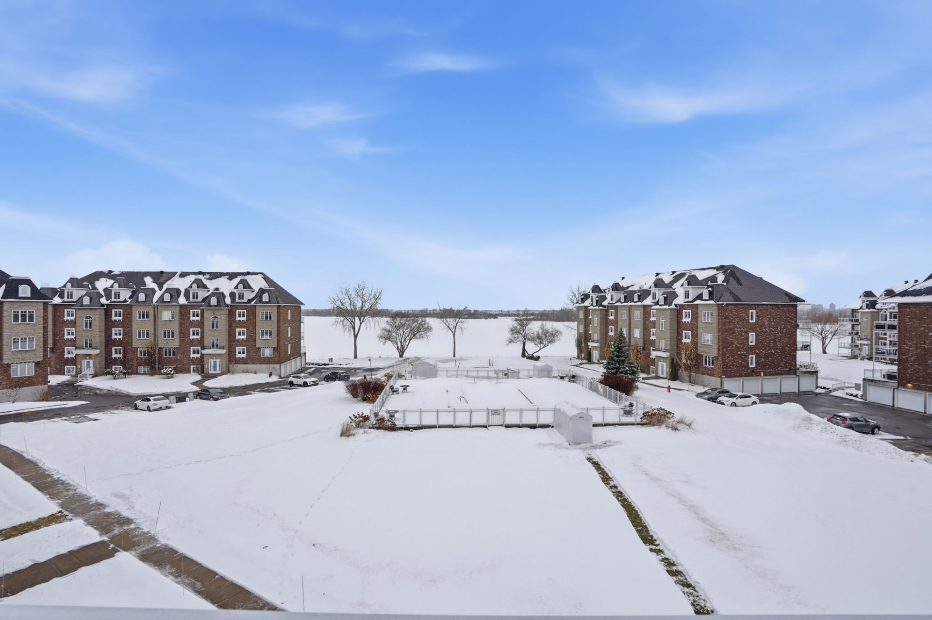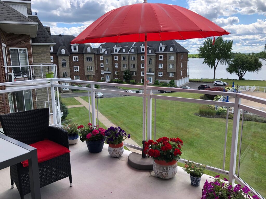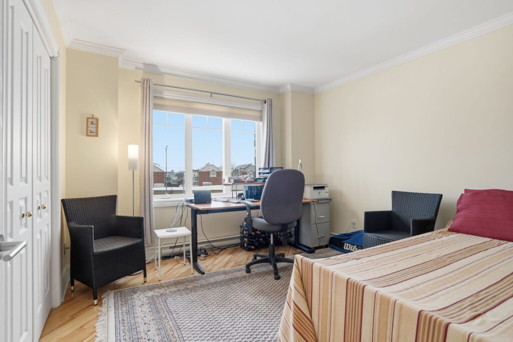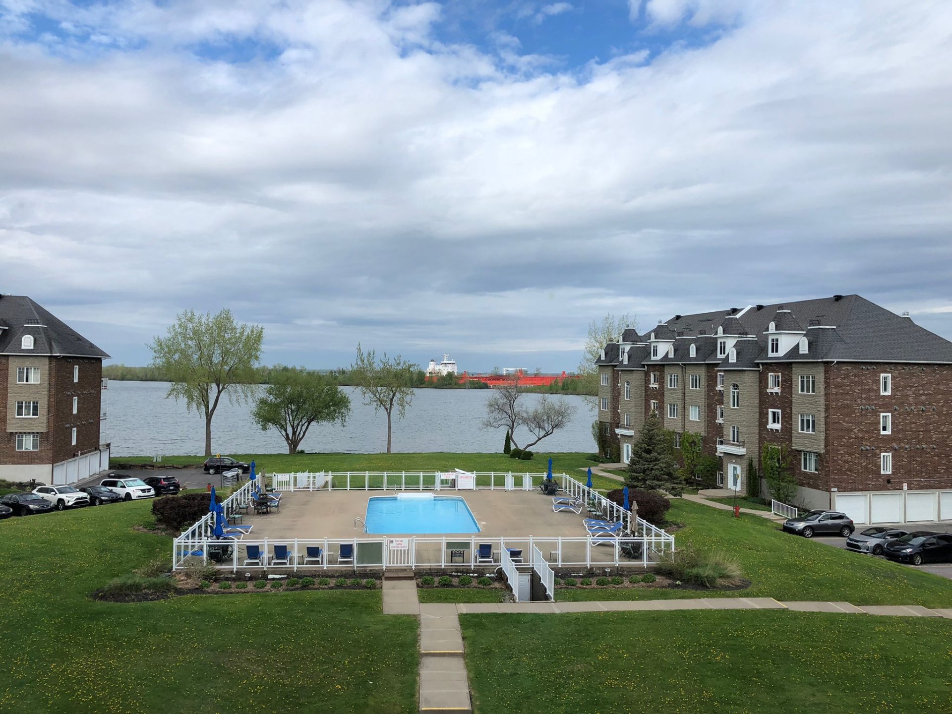 Beautiful 3rd-floor condo offering a spectacular view of the St. Lawrence River. This bright unit features two generously sized bedrooms, including a primary bedroom with walk-in closet, as well as a renovated bathroom. Renovated white and elegant kitchen with granite countertops, and heated floors in both the kitchen and bathroom for optimal comfort. Three parking spaces included, one in the garage with adjacent storage and another located under the pool. In-ground pool overlooking the river, set in a peaceful environment close to all services. Enjoy a breathtaking sunset over the river every evening.