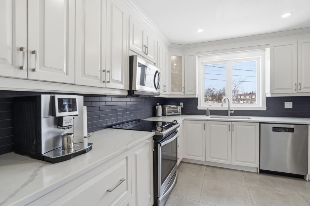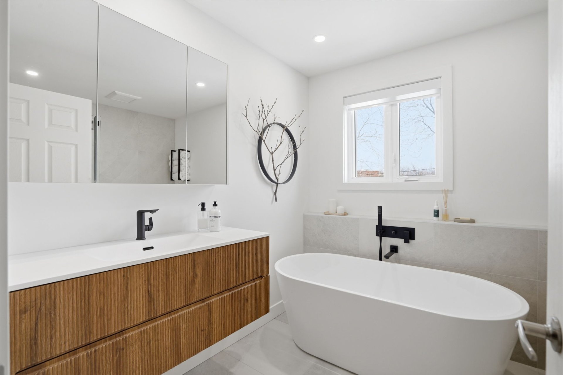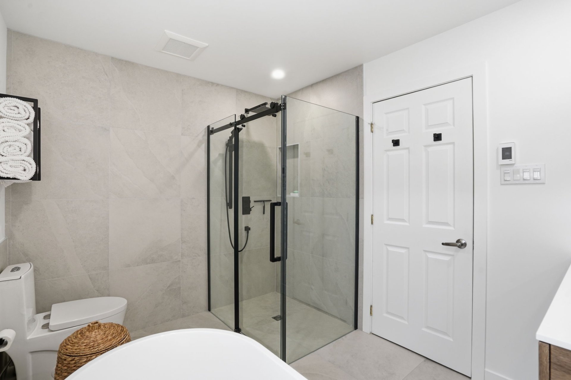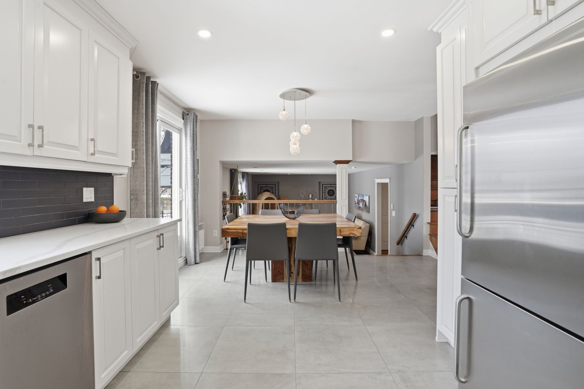 The main floor offers well-defined rooms that promote smooth and pleasant circulation. The living room is filled with natural light thanks to its bay window. The sunken family room provides a welcoming atmosphere, highlighted by a slow-combustion wood-burning fireplace, ideal for optimal comfort year-round, and offers access to the backyard through patio doors. The kitchen, renovated in 2020, features quartz countertops and cabinets refreshed the same year, providing an elegant and functional space. A versatile room on this level can be used as an office, bedroom, or playroom, along with a dedicated area for the washer and dryer.