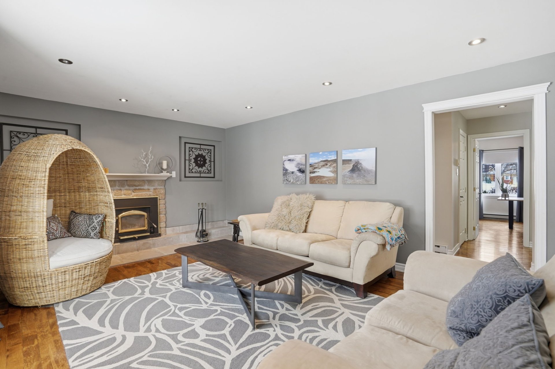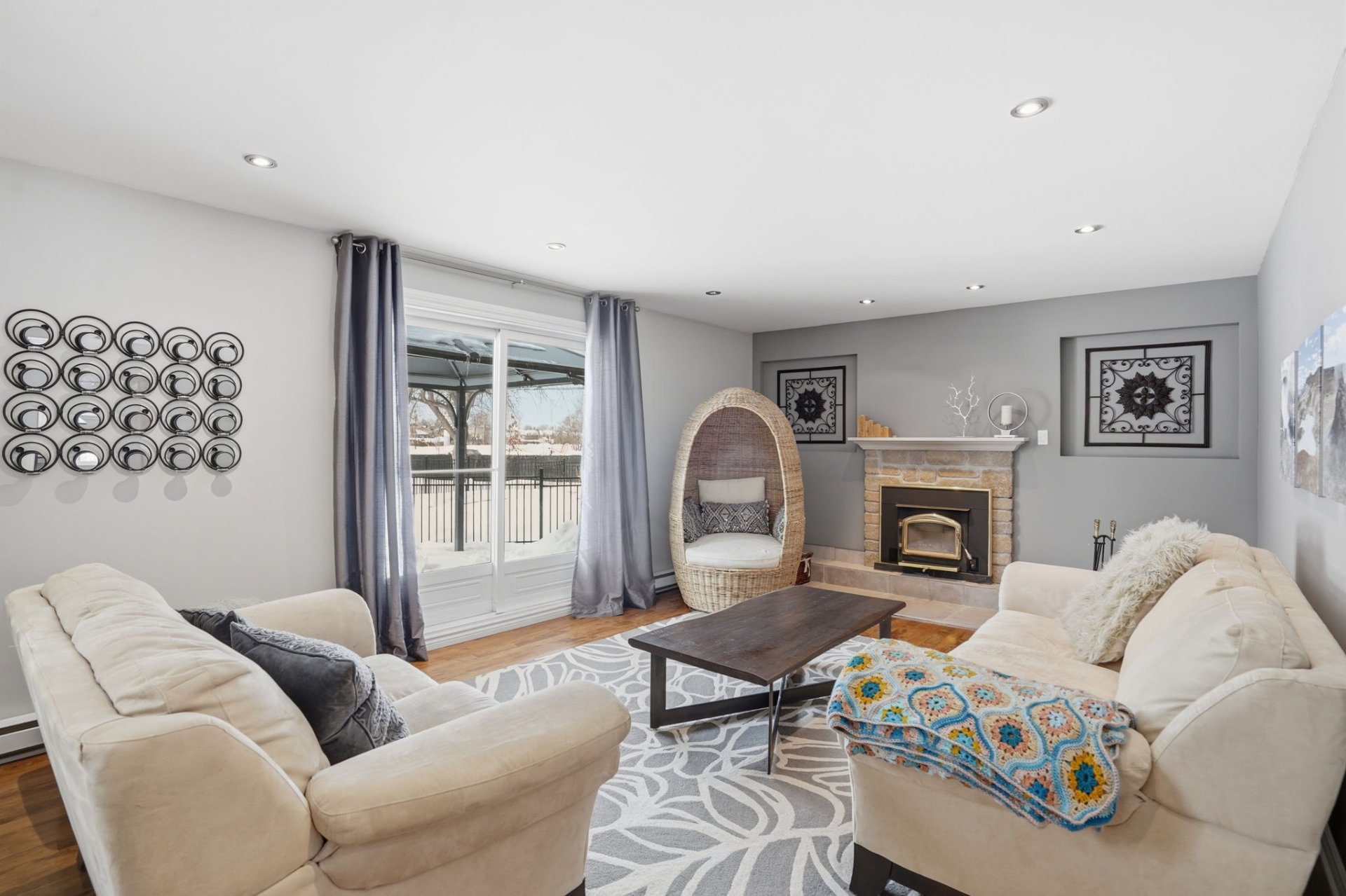 Charming multi-level property offering 6 bedrooms and 2 full bathrooms. Bright living area featuring a living room and family room with patio doors, enhanced by a slow-combustion fireplace. Modern kitchen with quartz countertops and a breakfast nook. Main-floor bedroom ideal as a home office. Upstairs, there are 3 bedrooms, including the primary bedroom with an ethanol fireplace and an ensuite bathroom. Finished basement includes a family room, 2 additional bedrooms, and storage space. Very large yard offering multiple areas on different levels, with an in-ground heated pool.