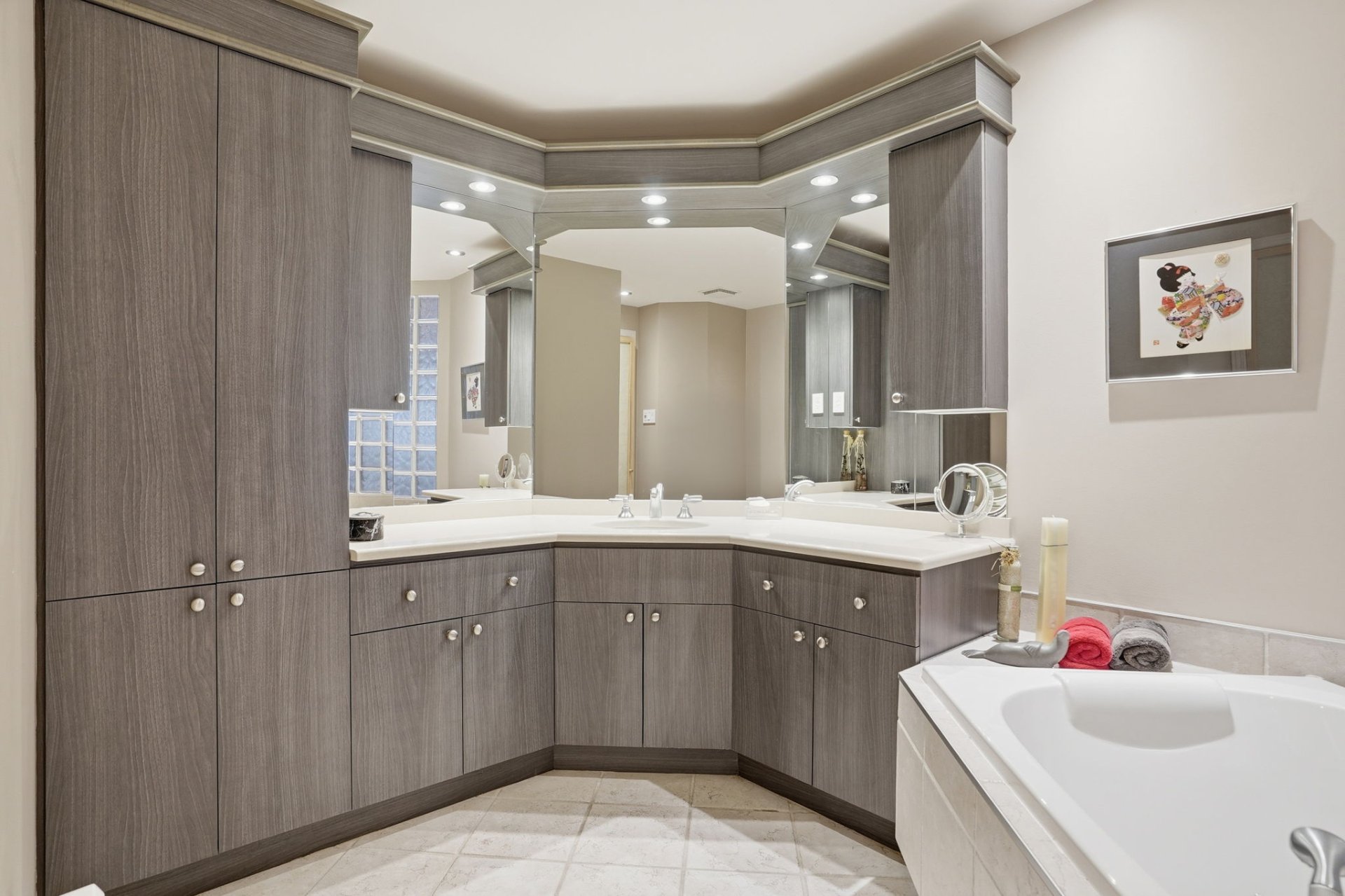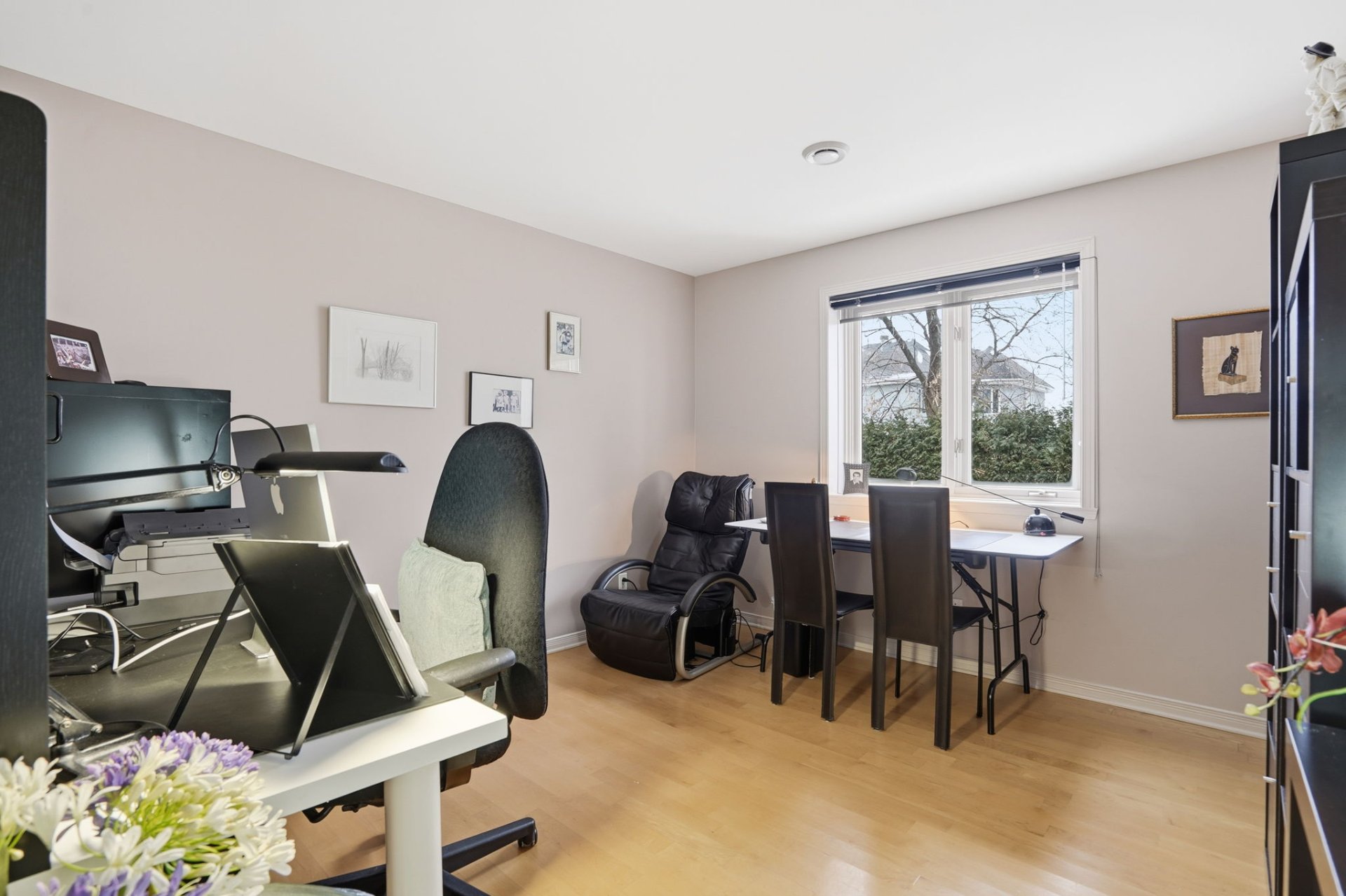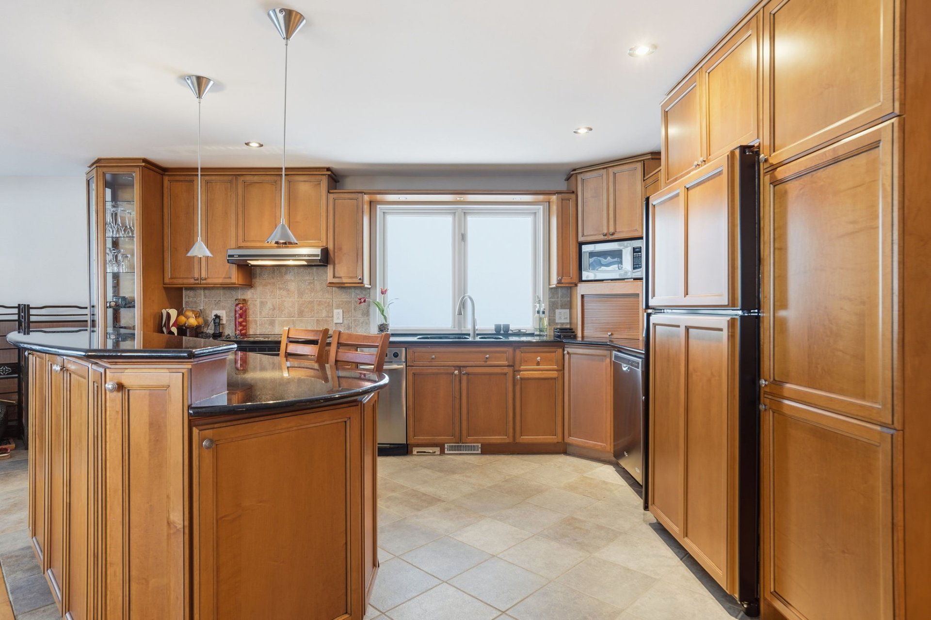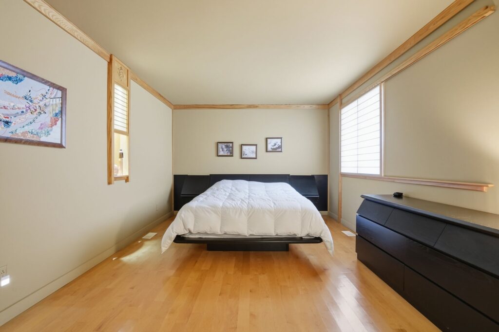 The kitchen impresses with its cherry wood cabinetry and granite countertops, combining elegance and functionality. In 2024, the installation of shoji screens, doors, and moldings inspired by Japanese design will add a distinctive and refined touch to the entire space.