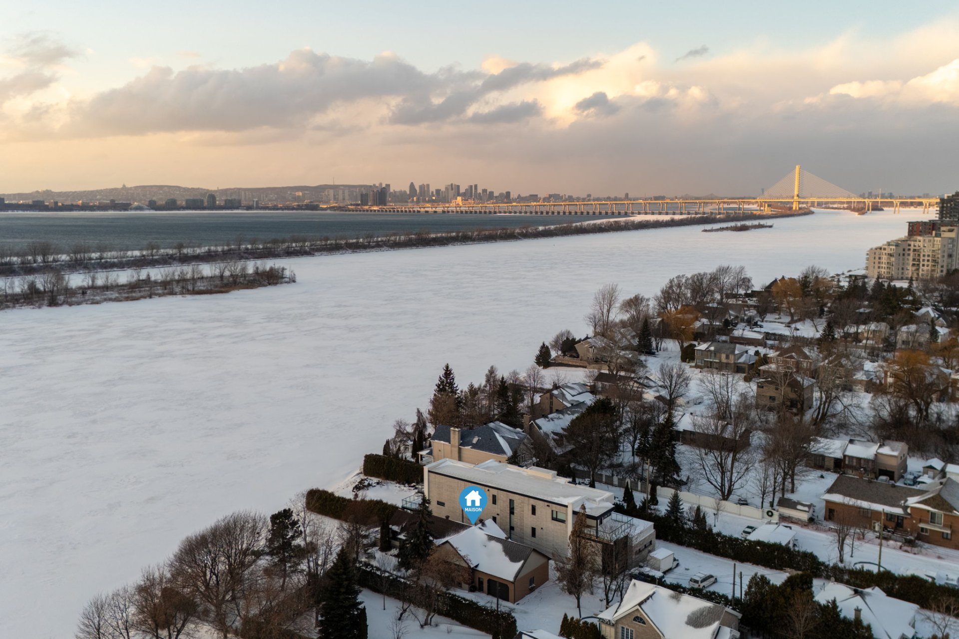Bungalow situated directly on the St. Lawrence River, offering breathtaking views of the water. Built on a spacious 14,807 sq ft lot, this property features three bedrooms, two on the main floor and one in the basement. The living room/sunroom with heated floors allows you to enjoy the panoramic views year-round. Balcony overlooking the river. Elegant kitchen with cherry wood cabinetry and granite countertops. An exceptional location for those seeking tranquility and unique scenery.