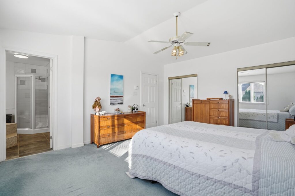 Upstairs, the home offers three spacious bedrooms and a large bathroom with a separate shower and bathtub, along with a convenient makeup area.
