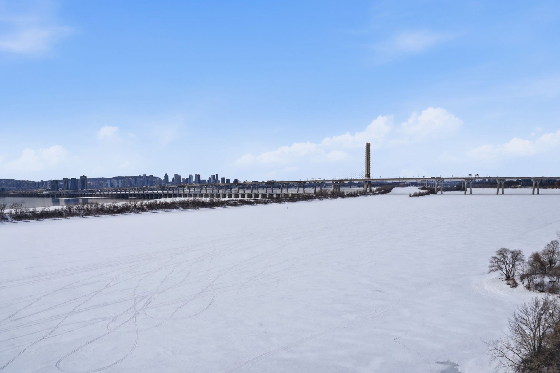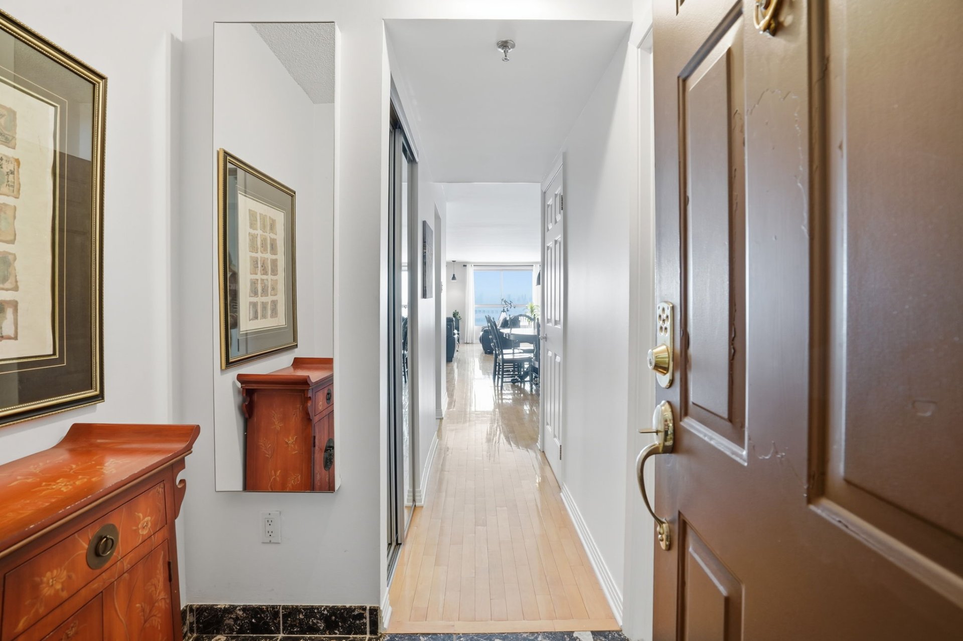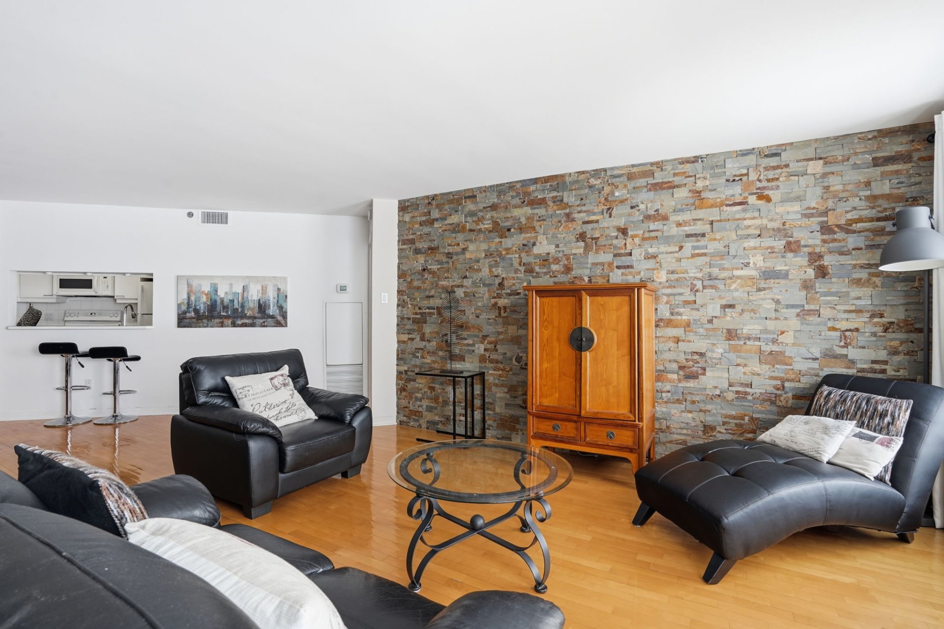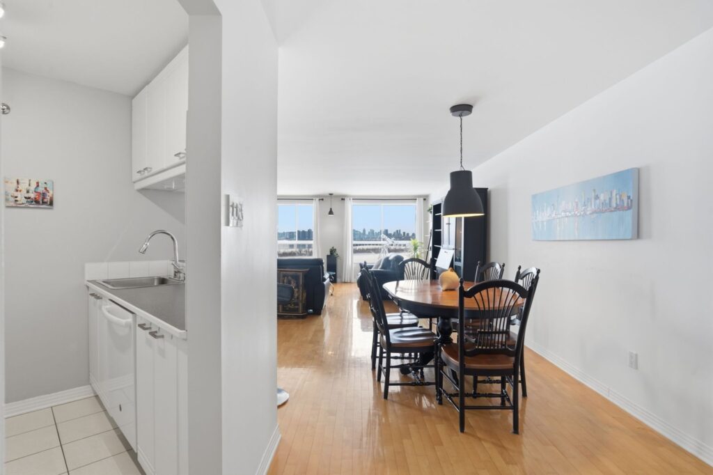 Spectacular view and exceptional location. On the 11th floor, this beautiful condo offers a breathtaking panorama of the St. Lawrence River, visible from both the living room and the bedroom. Originally, the condo had two bedrooms and has been converted into a spacious one-bedroom unit with a bright, well-proportioned living area. The unit includes two full bathrooms (one of which is an ensuite that was recently renovated), indoor parking, and a storage space. The building offers a pool, spa, sauna, elevators, and more–perfect for a lifestyle focused on comfort and relaxation.
