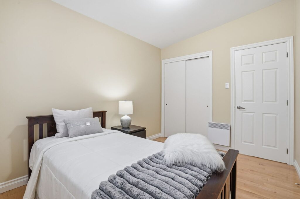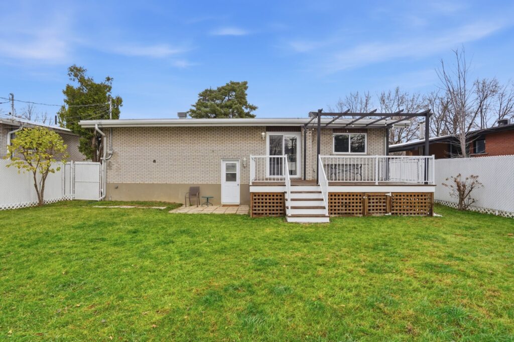 Located at 385 Verdure in Brossard, this turnkey renovated bungalow offers three bedrooms on the main floor and a fourth in the basement, a full bathroom, a powder room, and a separate laundry room. You will also enjoy a separate entrance at the rear of the house. The garage has been converted into an additional room for extra living space. The basement features a spacious family room. The intimate, fully fenced backyard includes a large wooden deck with a pergola. Don’t miss your chance to acquire this turnkey property. Contact us!