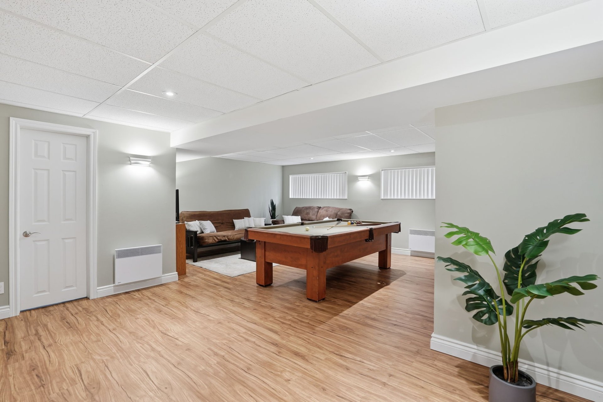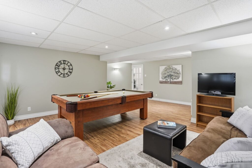 The spacious and inviting basement features an impressive family room, ideal for movie nights, a playroom, or a relaxing lounge area.