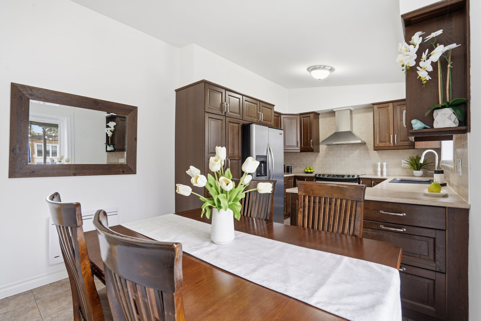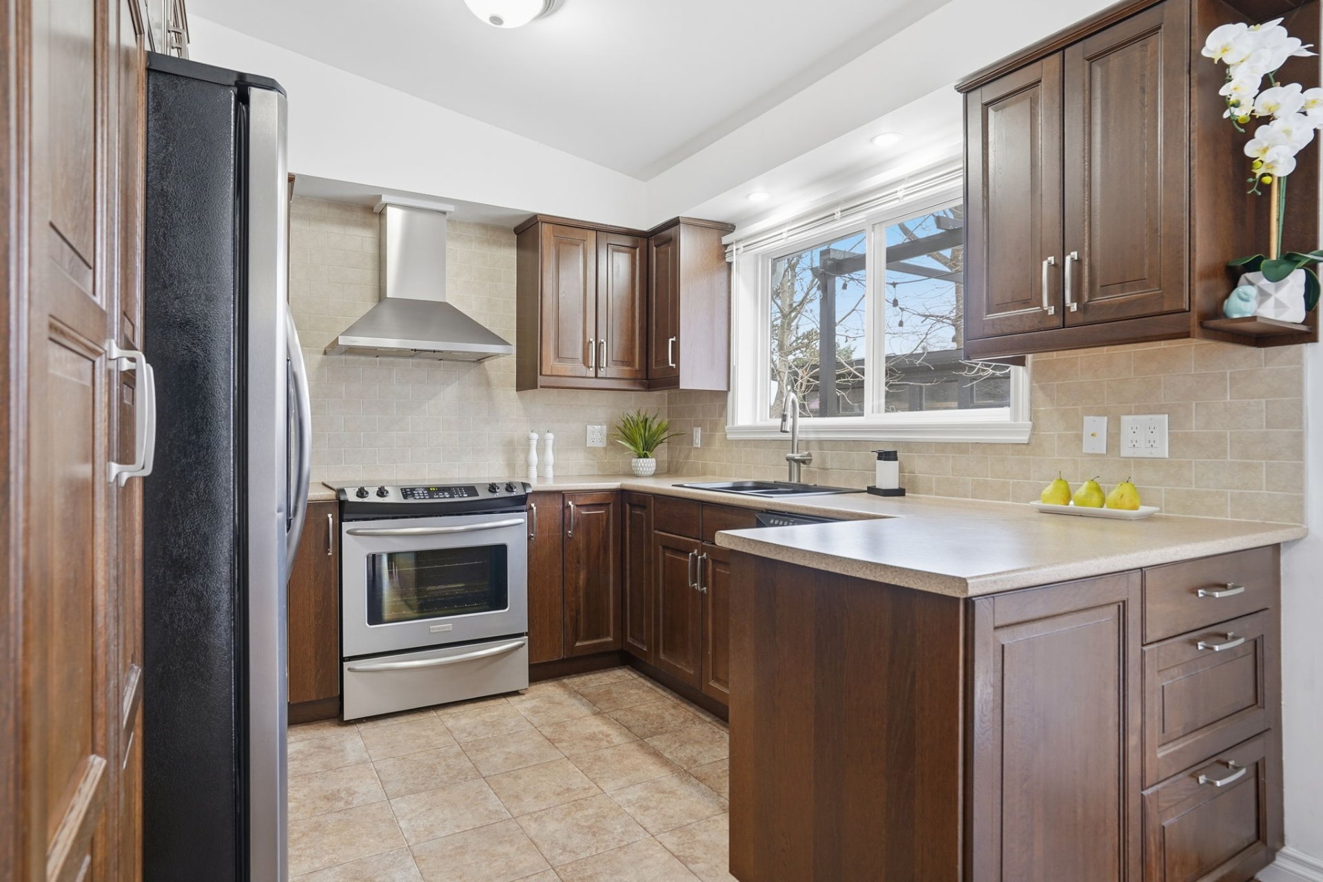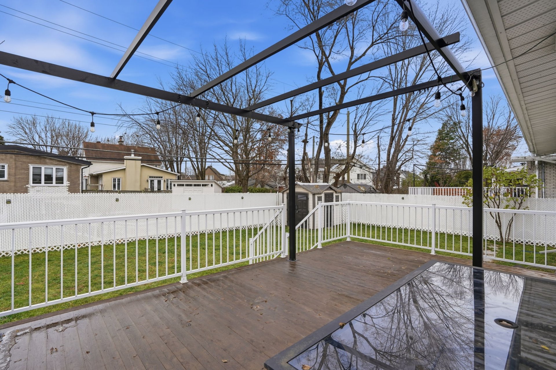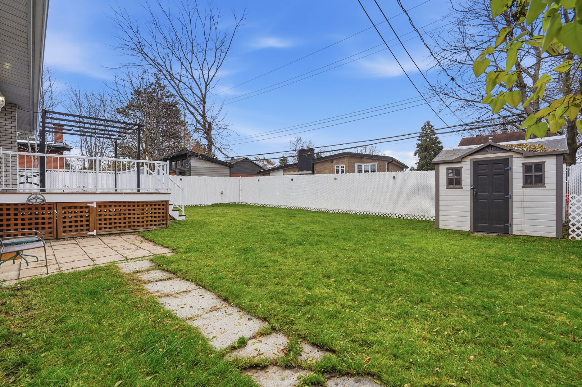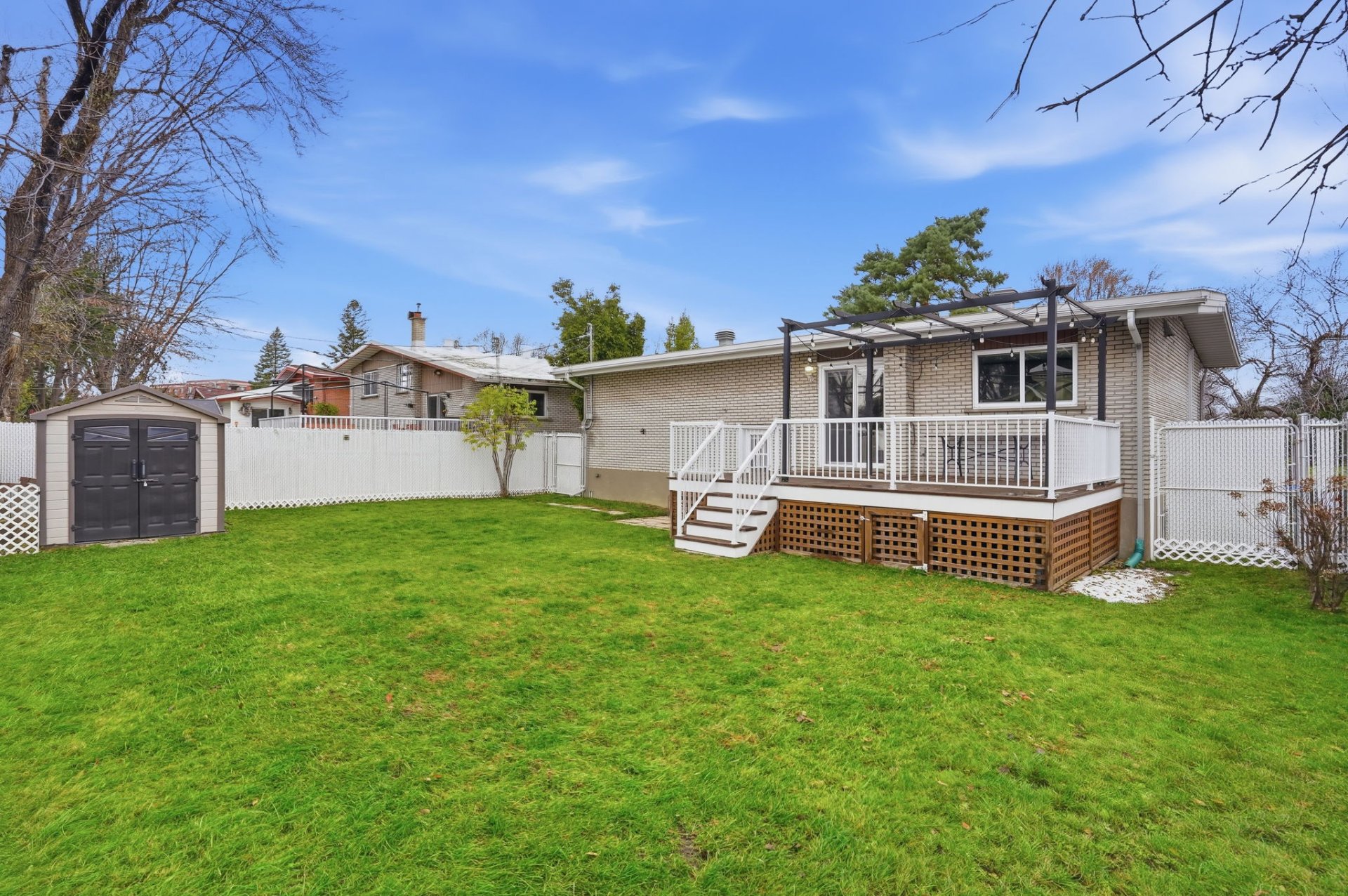 Outdoors, you’ll be charmed by the intimate, fully fenced backyard, enhanced with a large wooden deck and pergola–a true haven for hosting or enjoying sunny days in peace.