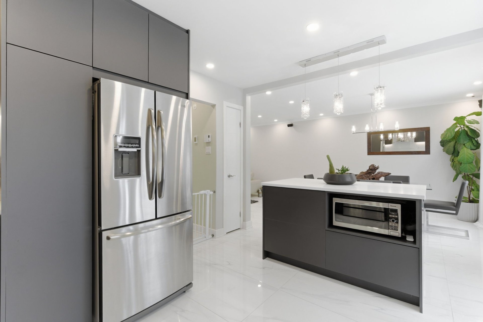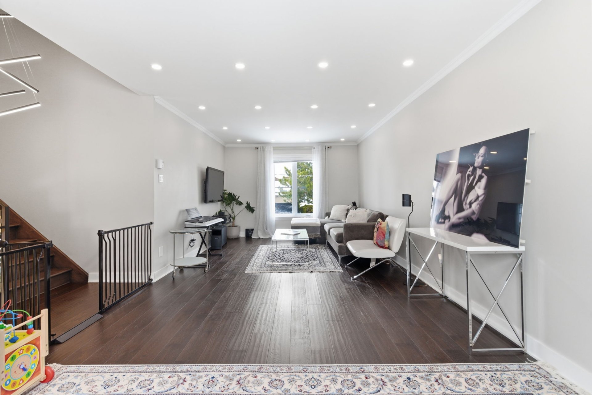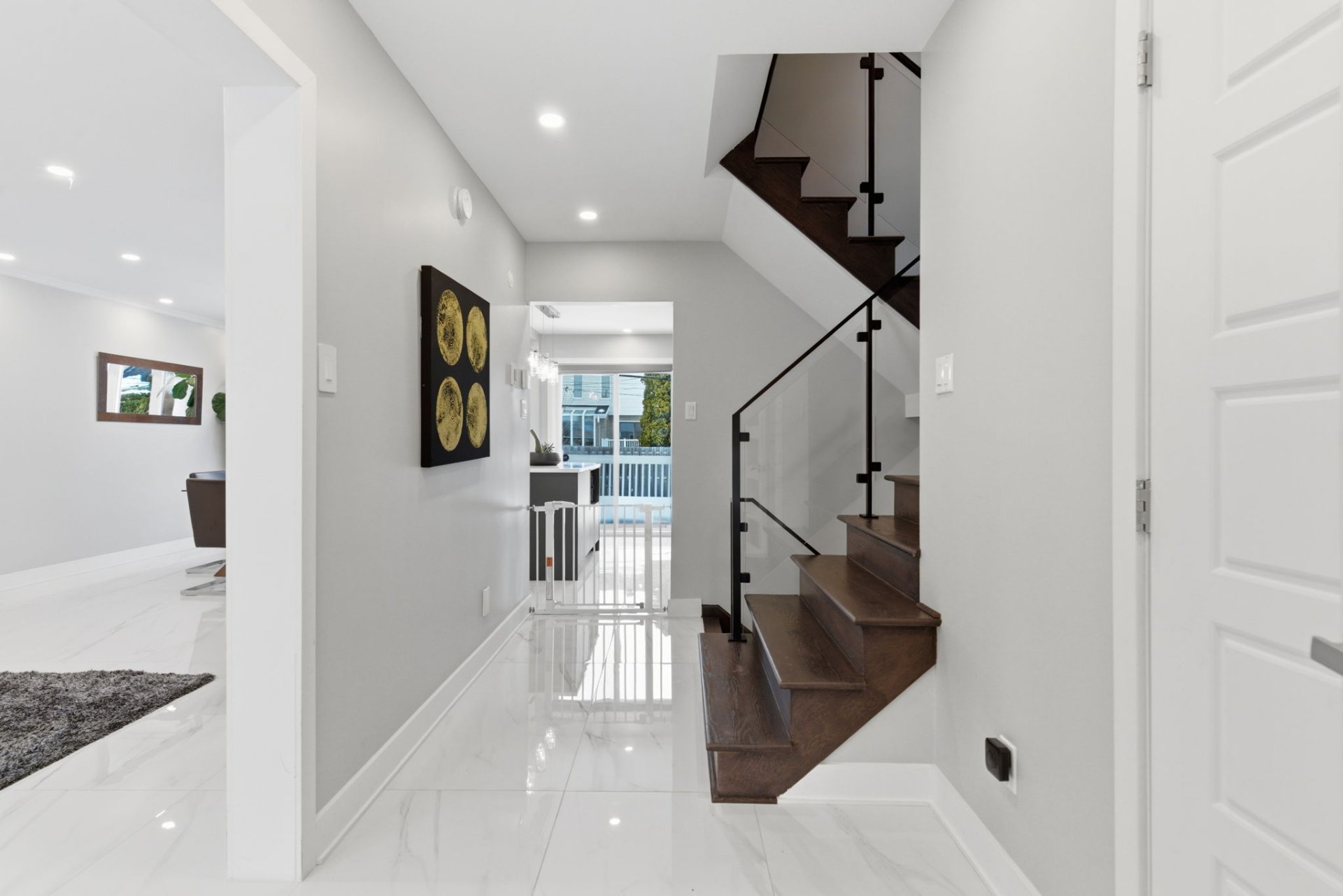 Main Floor (2022):-Installation of heated porcelain flooring-Fully renovated kitchen with central island and quartz countertops-Partial removal of dividing walls between the dining room and living room (open concept)-Entrance hall redone-Bathroom renovated in 2020