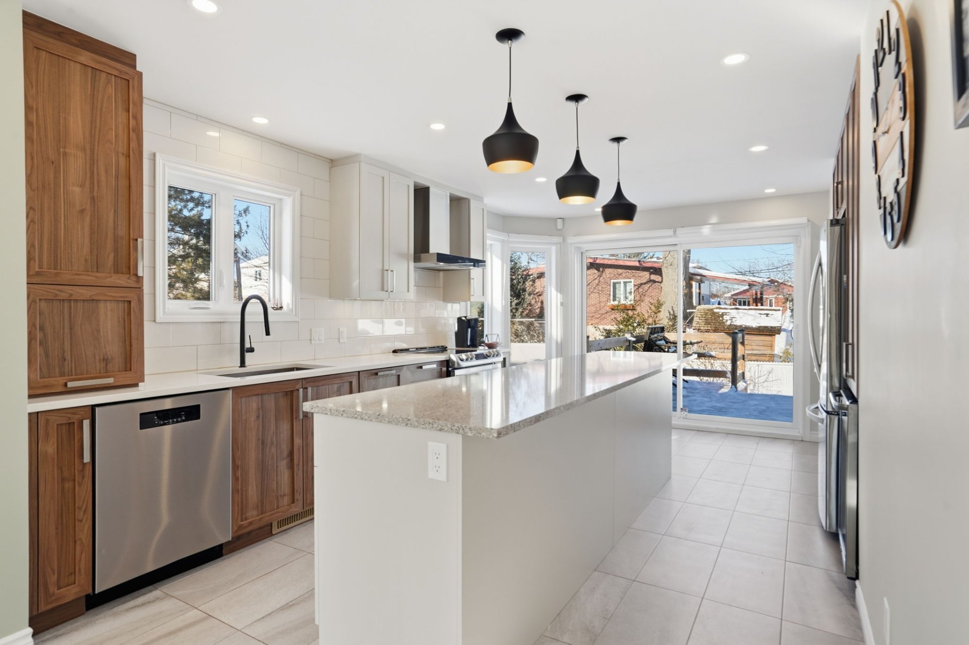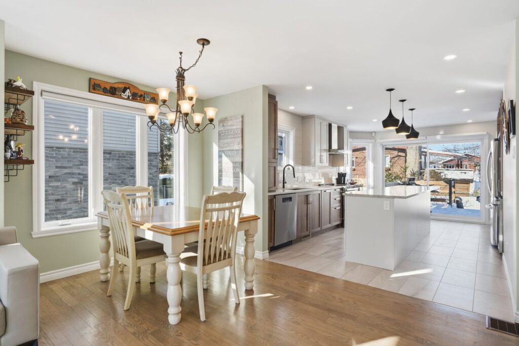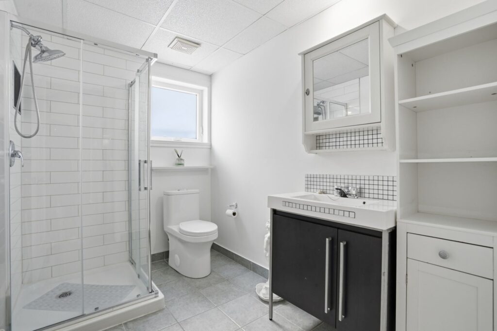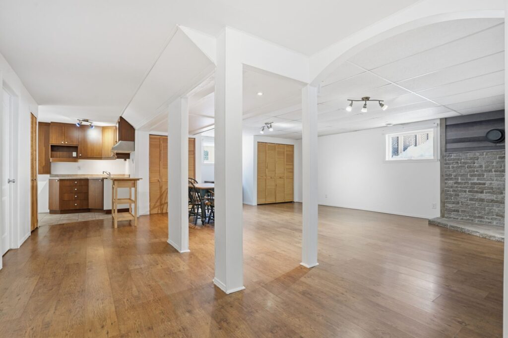 The fully finished basement provides an ideal setup for an intergenerational unit or independent living space. It includes a second kitchen, dining area, bathroom, laundry room, two closed bedrooms, and a cold room. The property is also adapted for people with reduced mobility, making it a thoughtful and inclusive option.