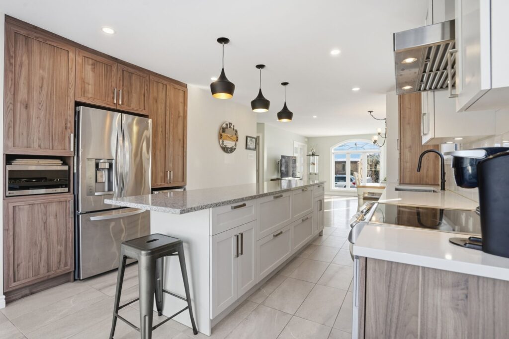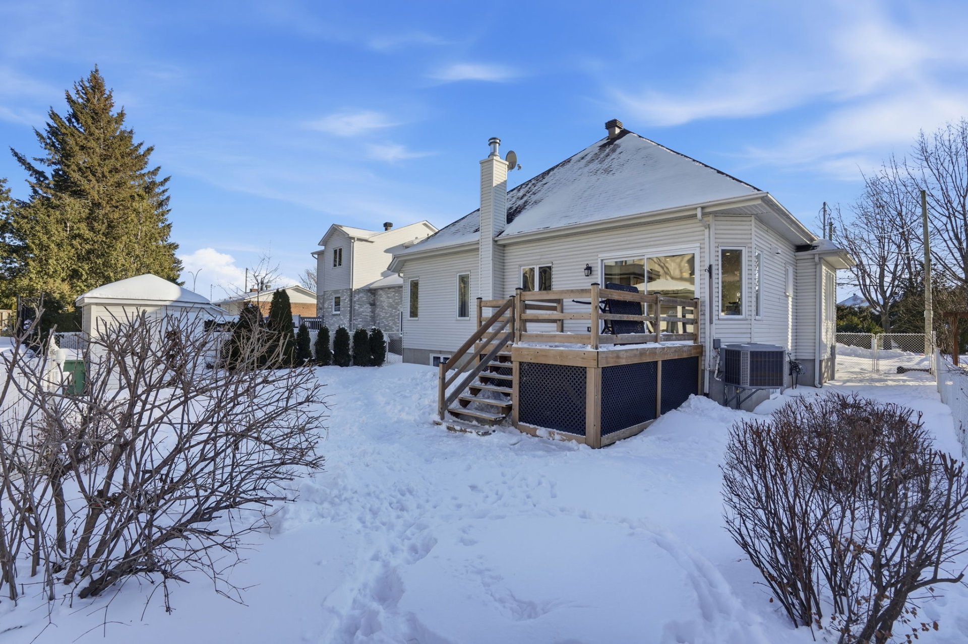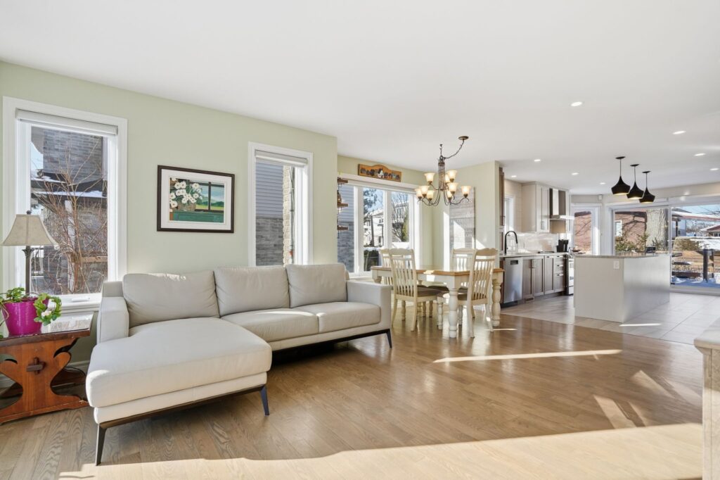 Beautiful, bright, and versatile bungalow offering 4 bedrooms, including a primary bedroom with an ensuite bathroom featuring heated floors. Renovated kitchen in 2020 and open-concept living areas with recessed lighting. The fully finished basement can be set up as an intergenerational space if desired, with a kitchen, 2 bedrooms, and a second laundry room–perfect for accommodating teenagers or parents. The property is also adapted for people with reduced mobility, with a ramp leading to the garage. Lovely fenced and landscaped yard with a large patio, ideal for entertaining family and friends. This property offers everything to please.