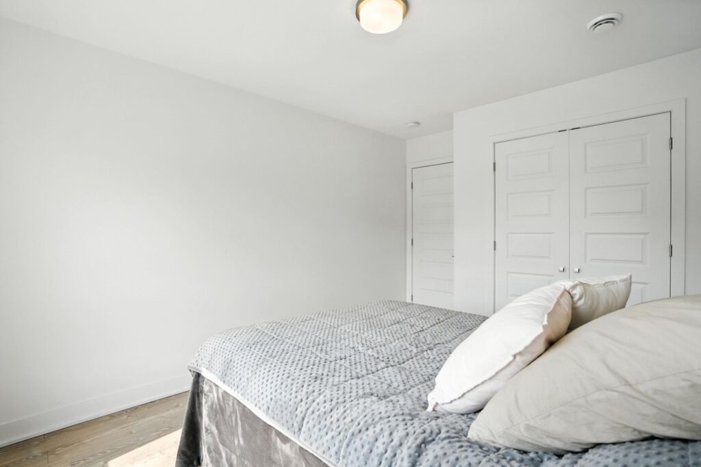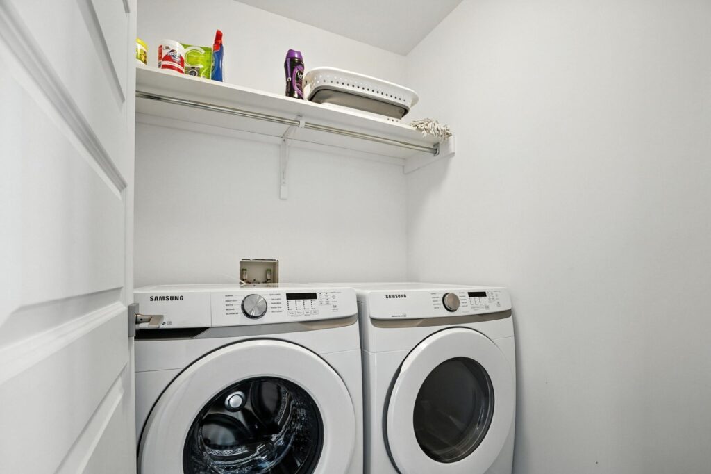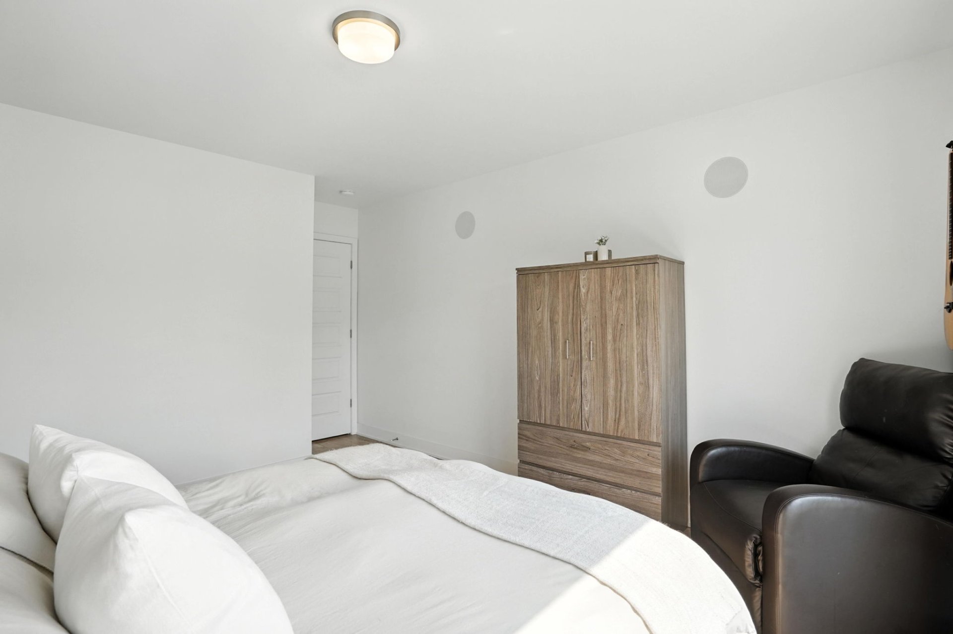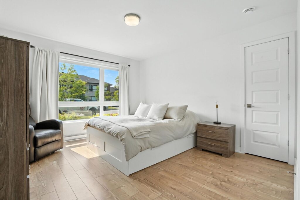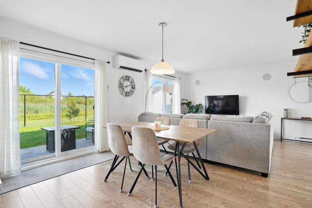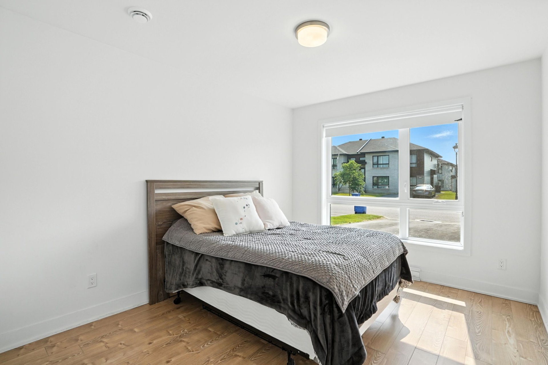 The condo is equipped with high-quality laminate flooring, melamine cabinets, included light fixtures, Sonos built-in speakers, an iPad with Sonos system, wall-mounted air conditioning, central vacuum, and an air exchanger for optimal comfort. The pre-wiring is ready for your televisions and telephones. Outside, you’ll enjoy a large concrete balcony, a grassy and paved yard, two parking spaces, and a practical shed. A turnkey concept combining contemporary style and premium amenities.