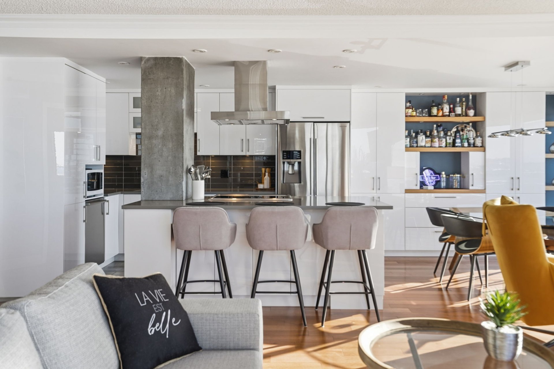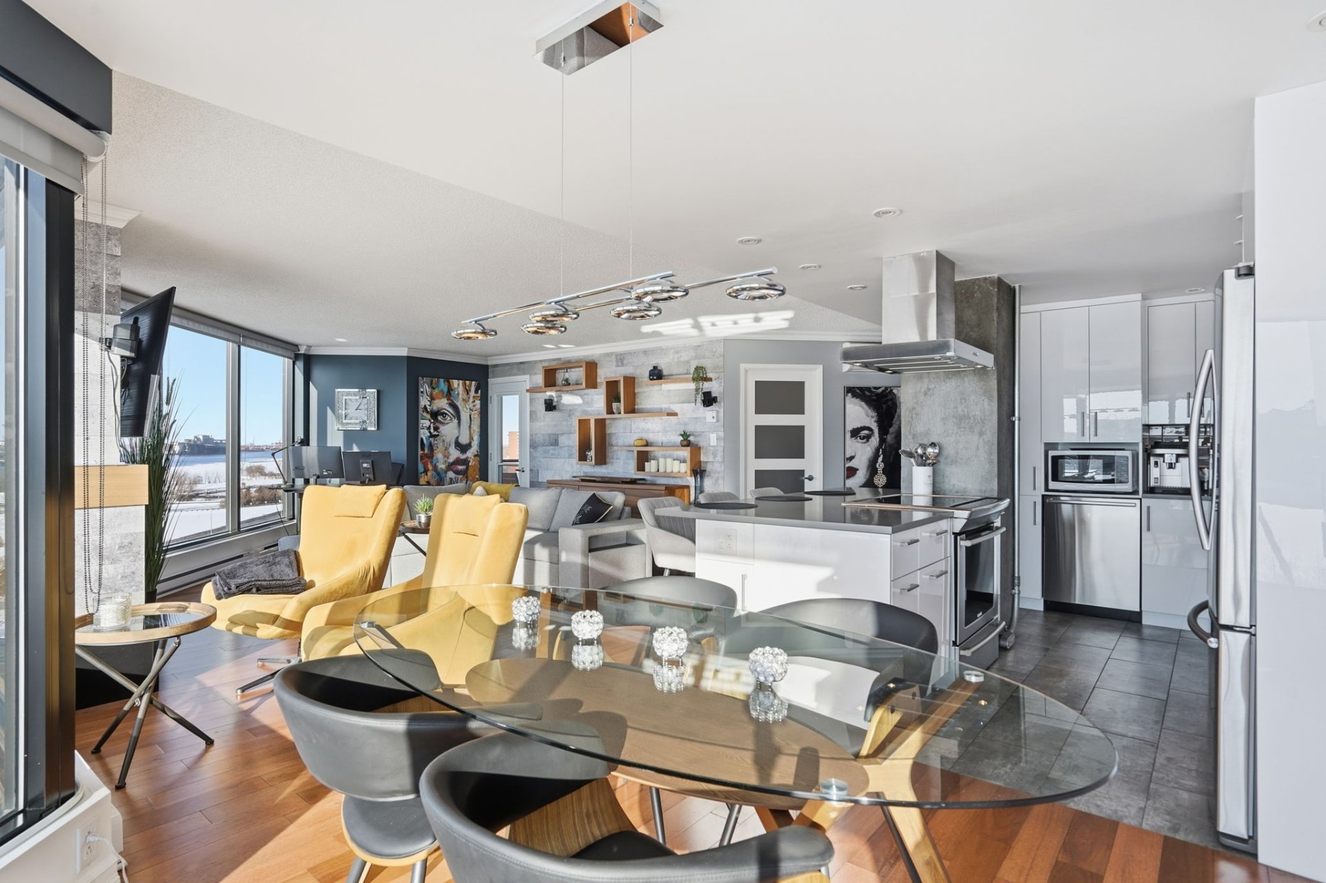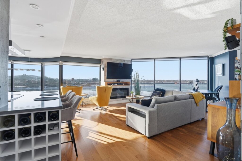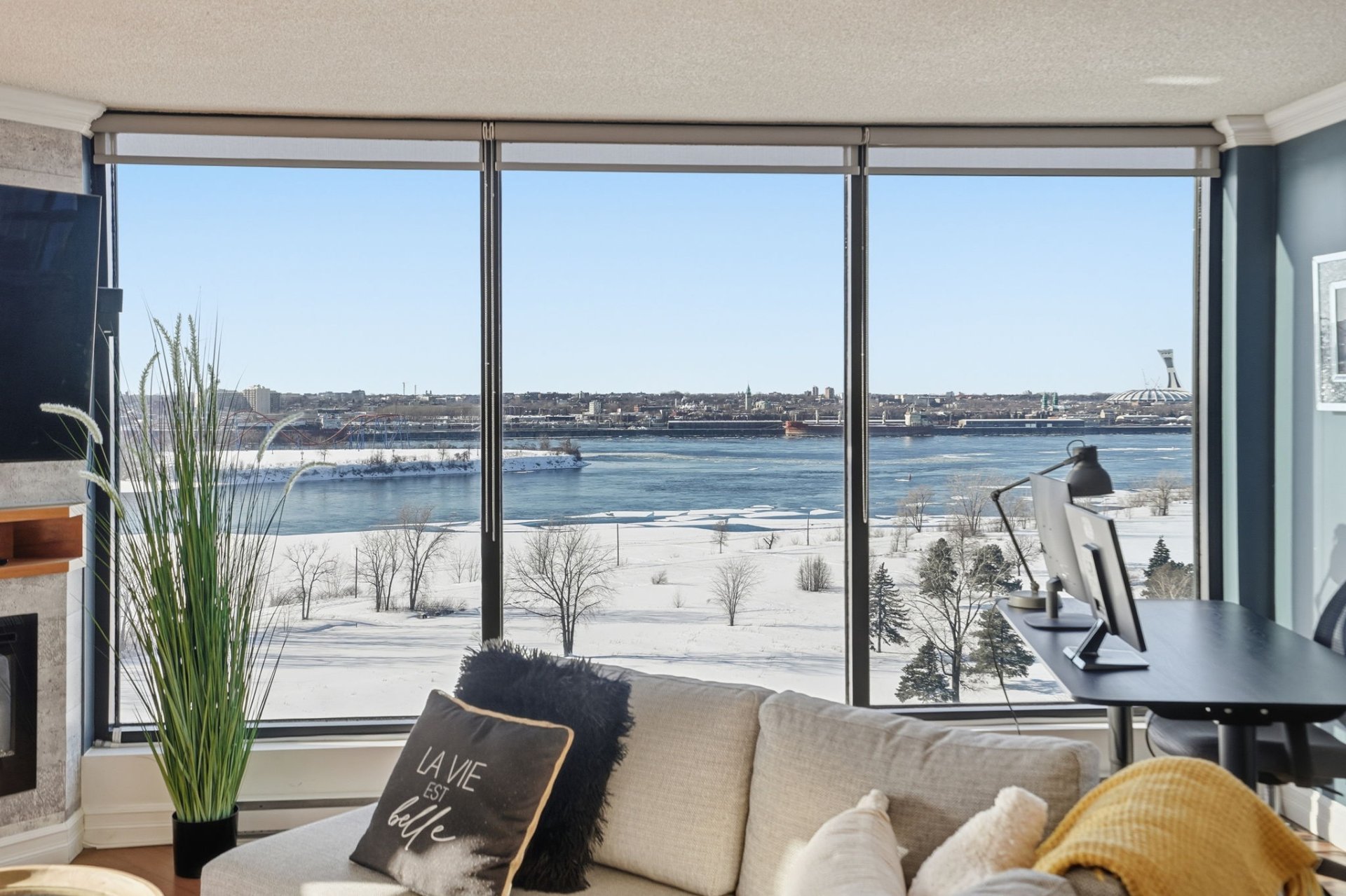 Absolutely stunning condo offering a MAGNIFICENT view of the St. Lawrence River, the Jacques-Cartier Bridge, La Ronde and the Old Port. This fully renovated, light-filled unit allows you to enjoy spectacular year-round views and VIP seating for the Loto-Québec fireworks, right from your living room.