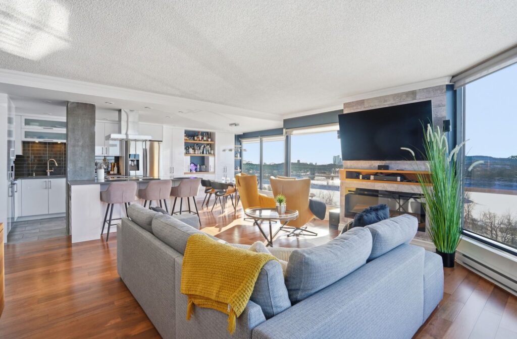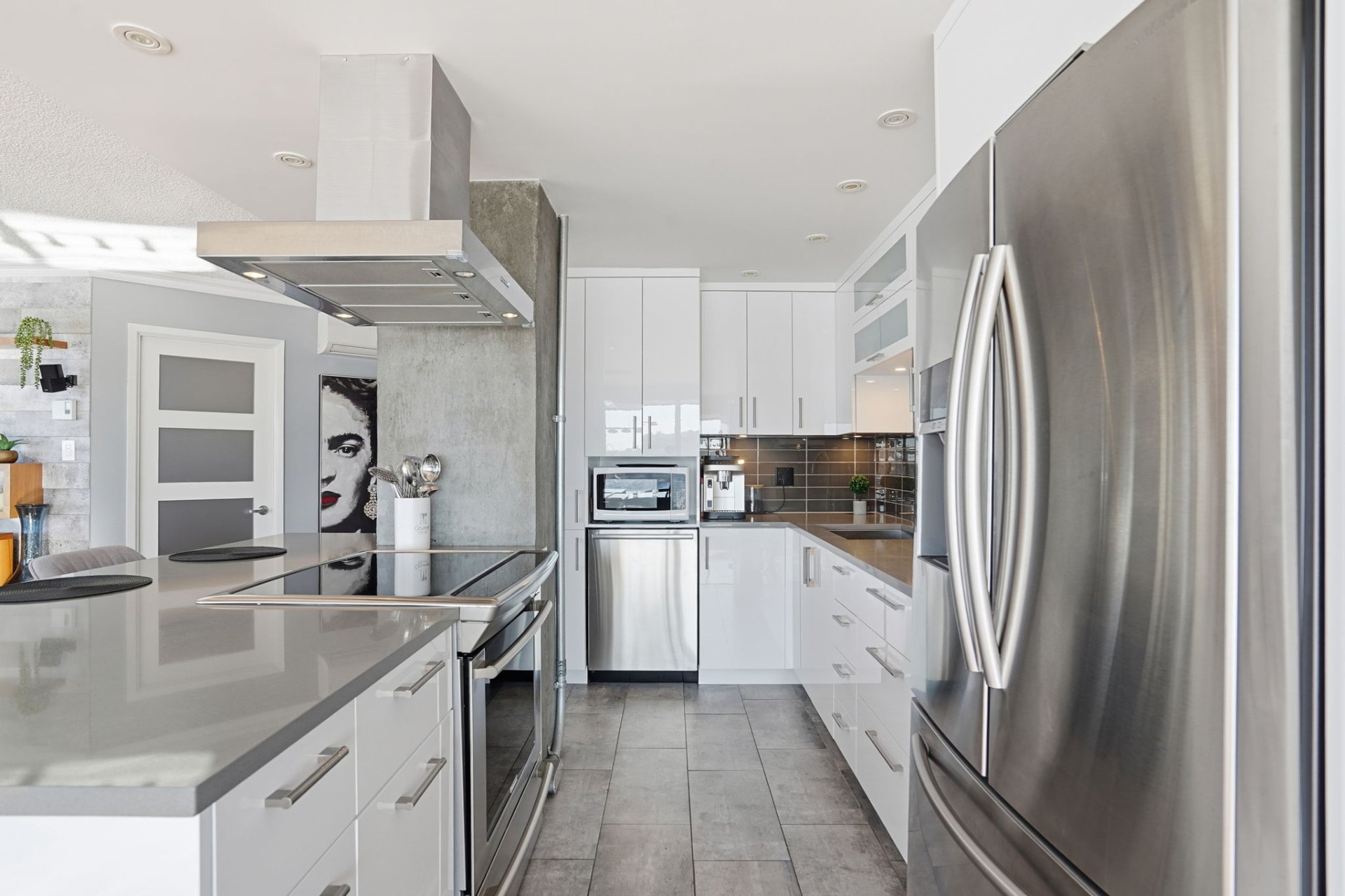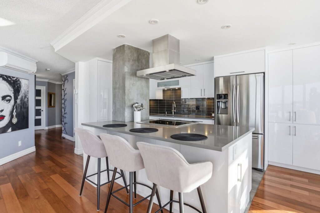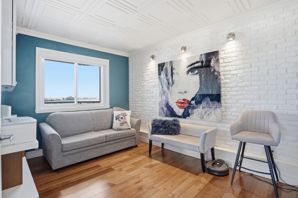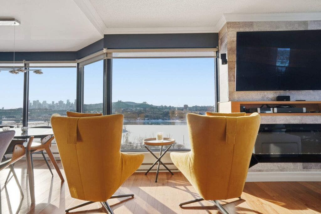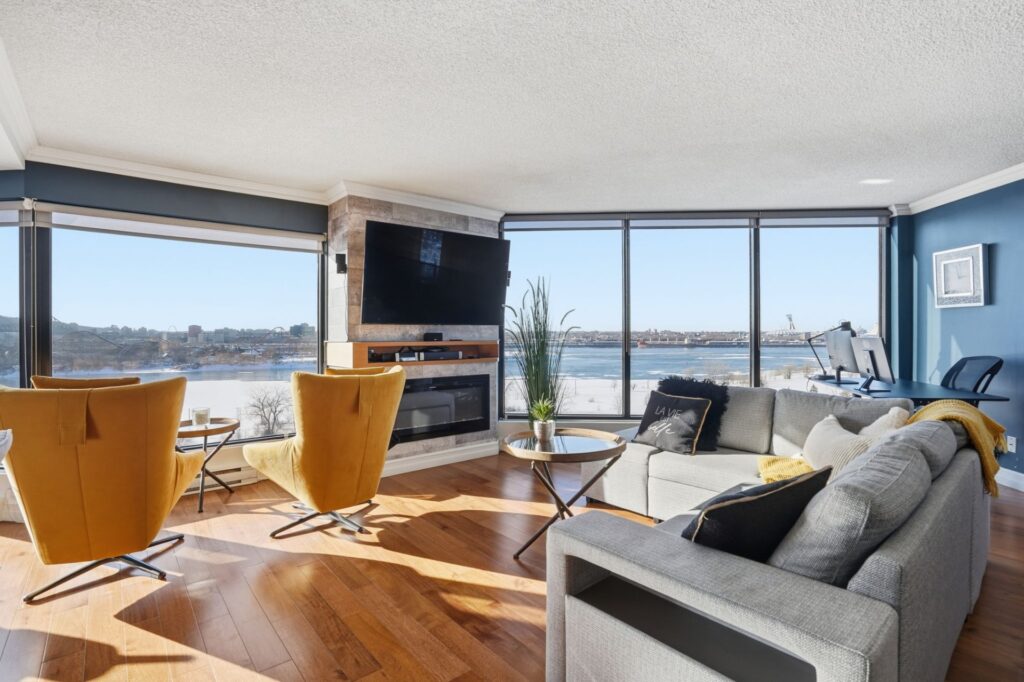 Absolutely stunning condo offering a MAGNIFICENT view of the St. Lawrence River, the Jacques-Cartier Bridge, La Ronde and the Old Port. This fully renovated, light-filled unit allows you to enjoy spectacular year-round views and VIP seating for the Loto-Québec fireworks, right from your living room.