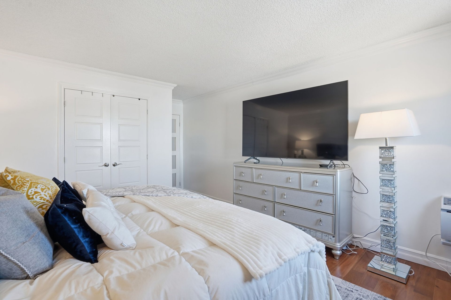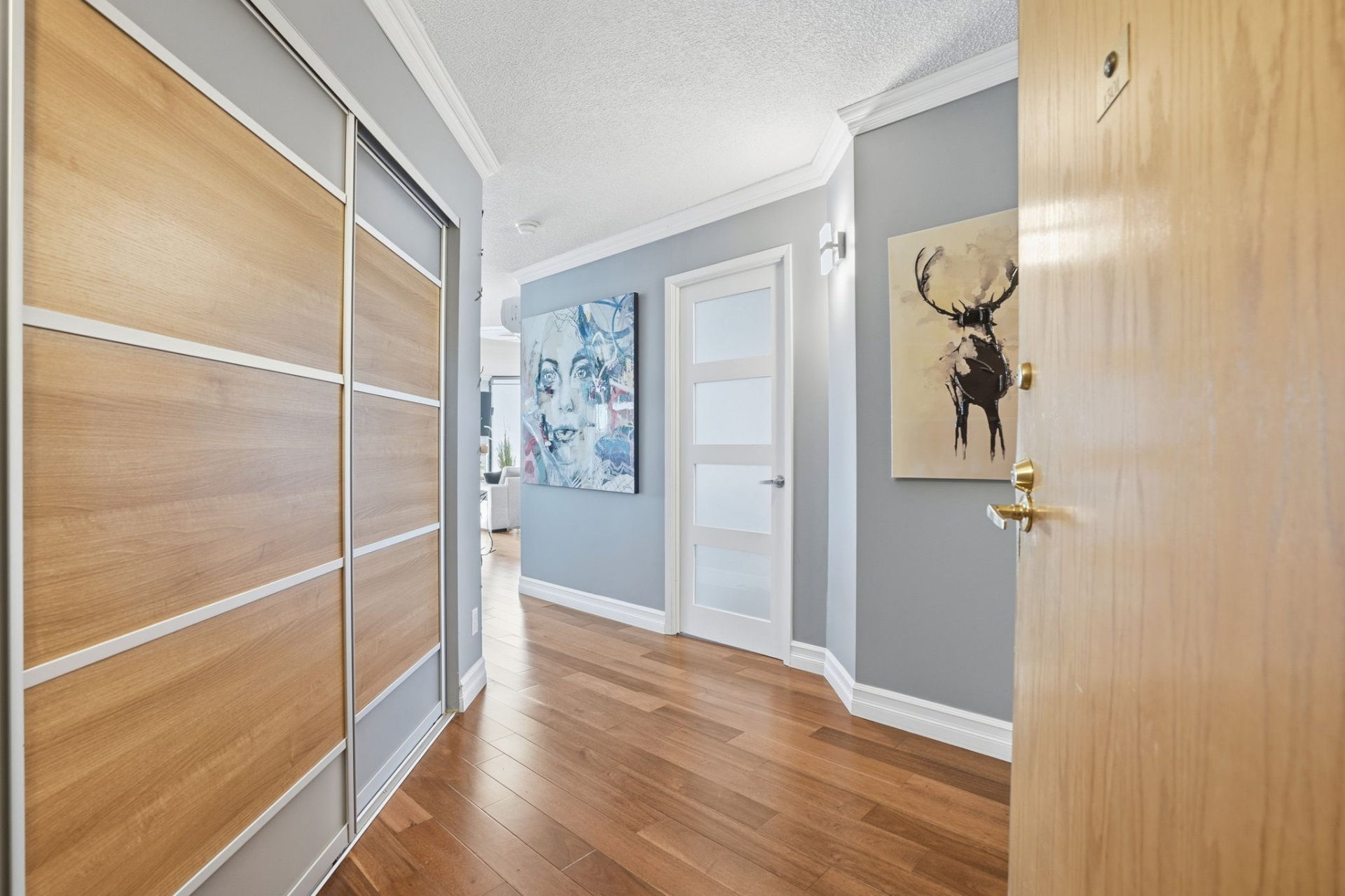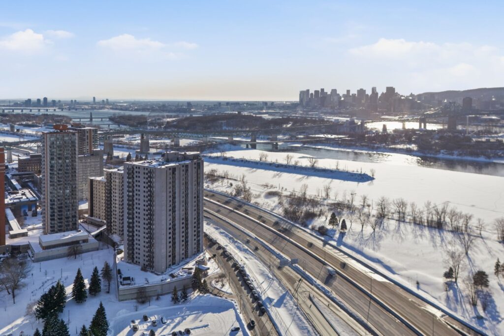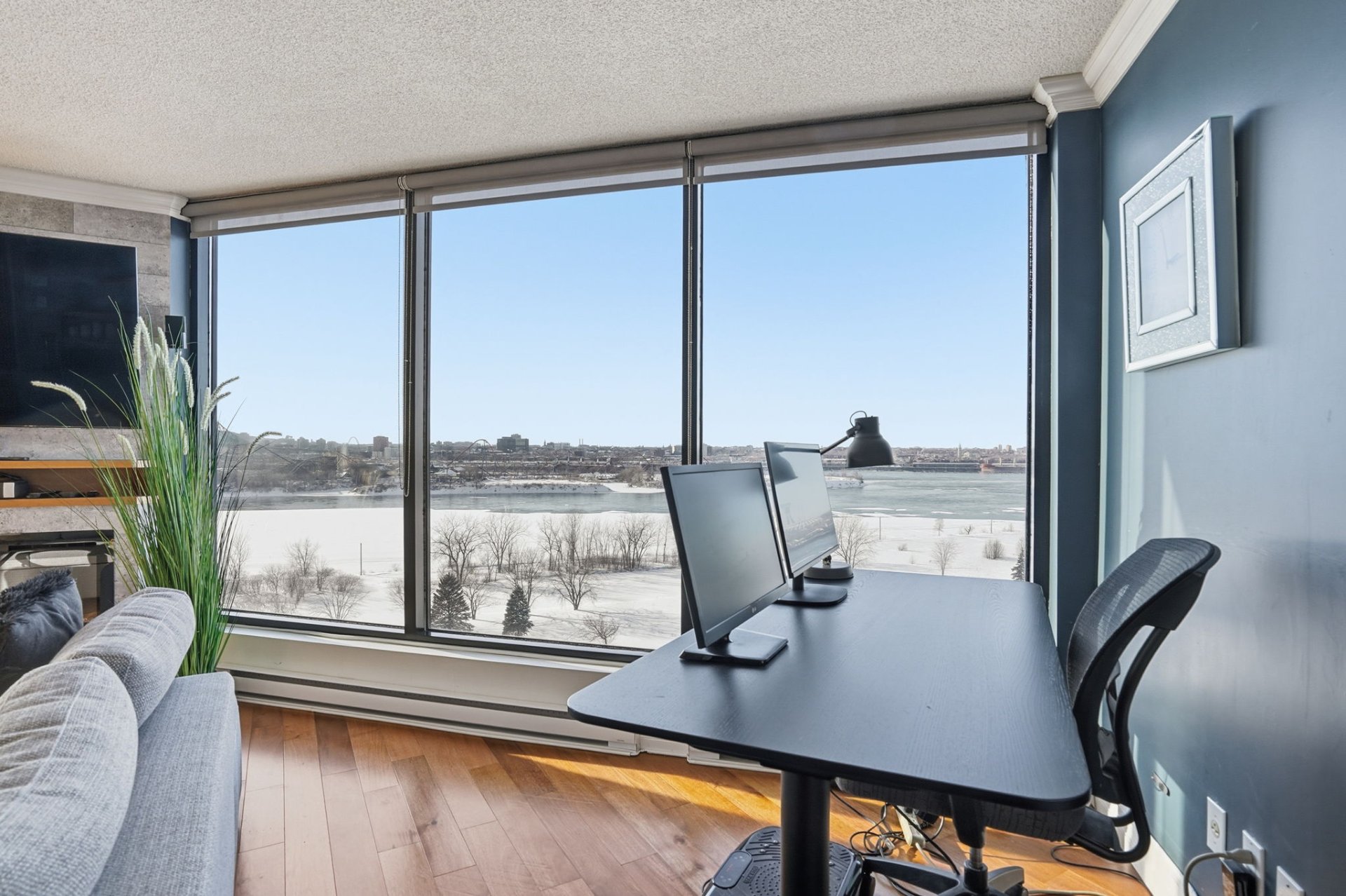 Stunning, must-see condo offering a MAGNIFICENT view of the St. Lawrence River, the Jacques-Cartier Bridge, La Ronde and the Old Port. Fully renovated and flooded with natural light, this unit boasts exceptional panoramic views from everywhere — the kitchen, dining room, living room, or home office. Features 2 bedrooms, 1 bathroom, 2 garage parking spaces and 2 storage units. Building amenities include a gym, indoor pool with spa, outdoor pool and sauna. Living area of 1,190 sq. ft. Direct indoor access to the metro. Prime and highly sought-after location.