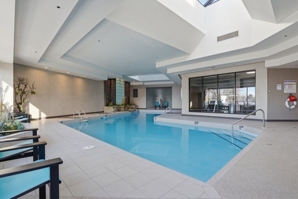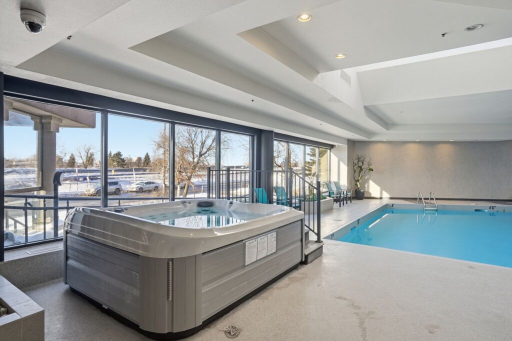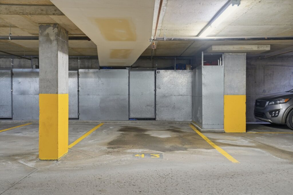 The unit offers 2 bedrooms, 1 bathroom, 2 indoor garage parking spaces and 2 storage units. Well-appointed building featuring a gym, indoor pool with spa, outdoor pool and sauna.