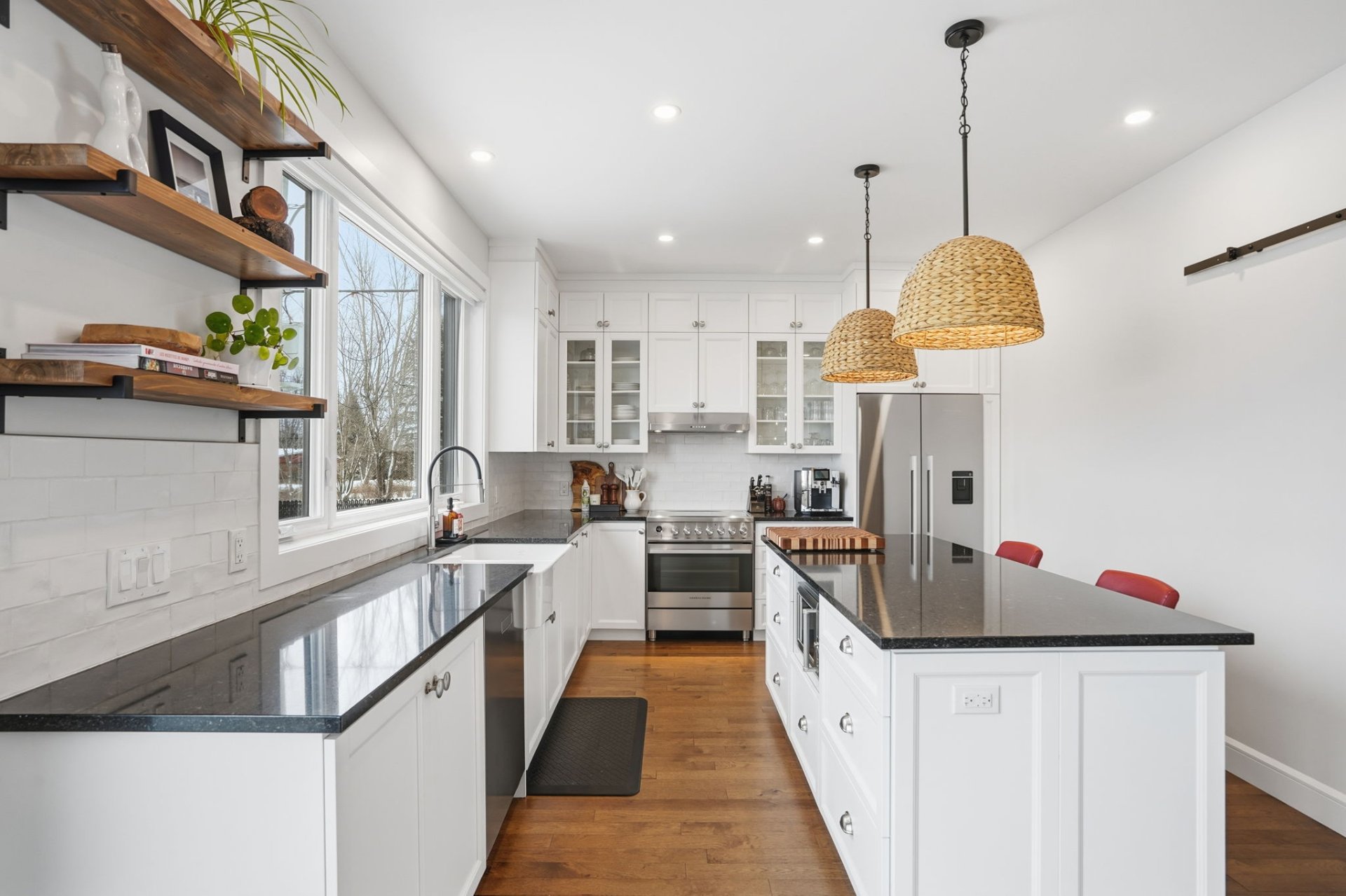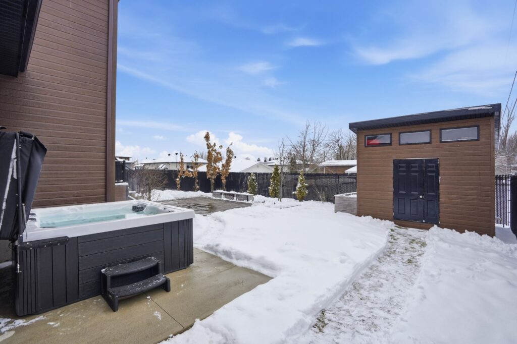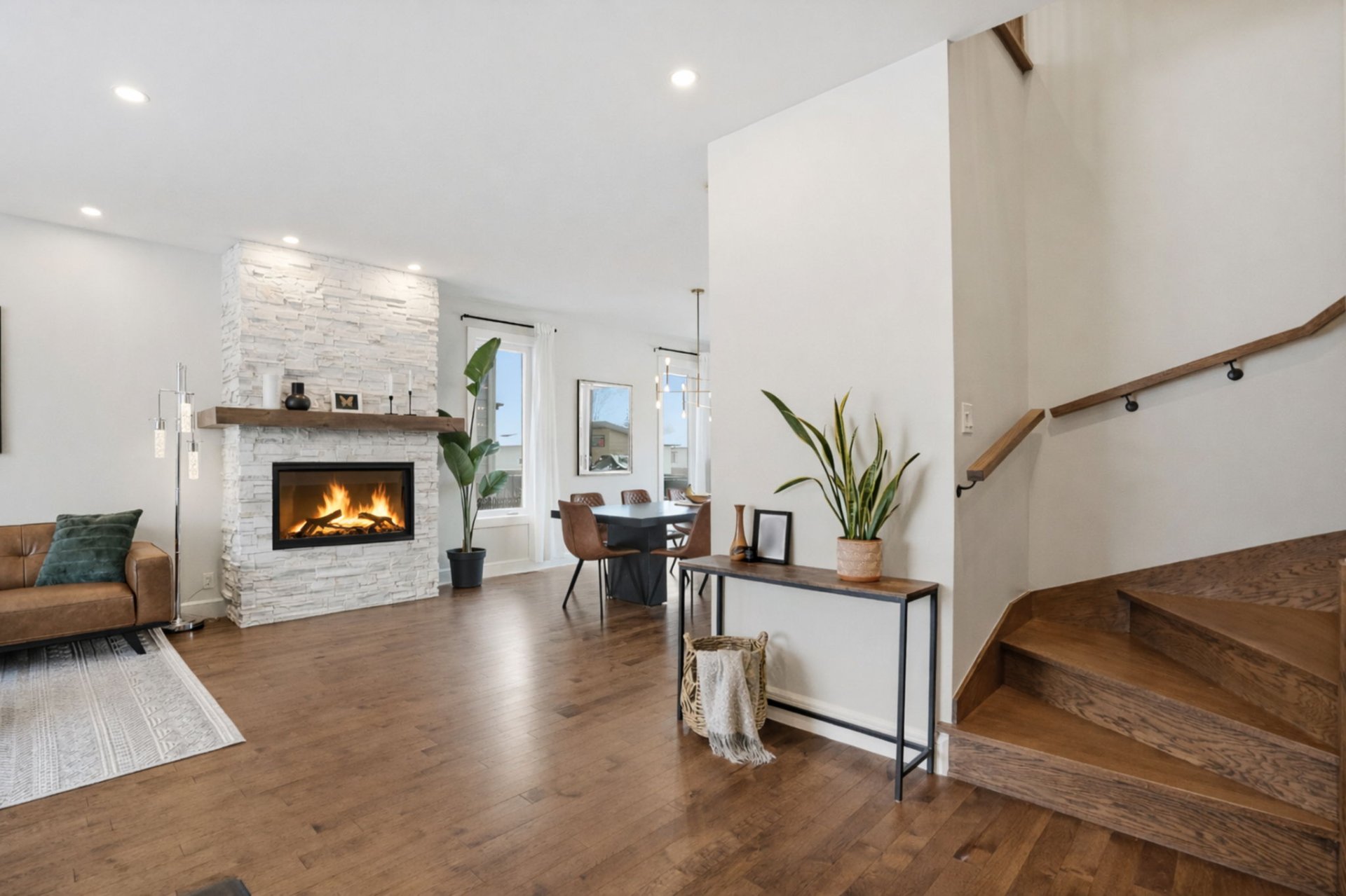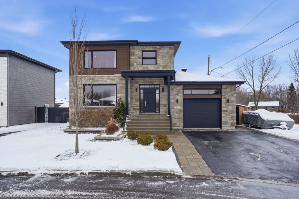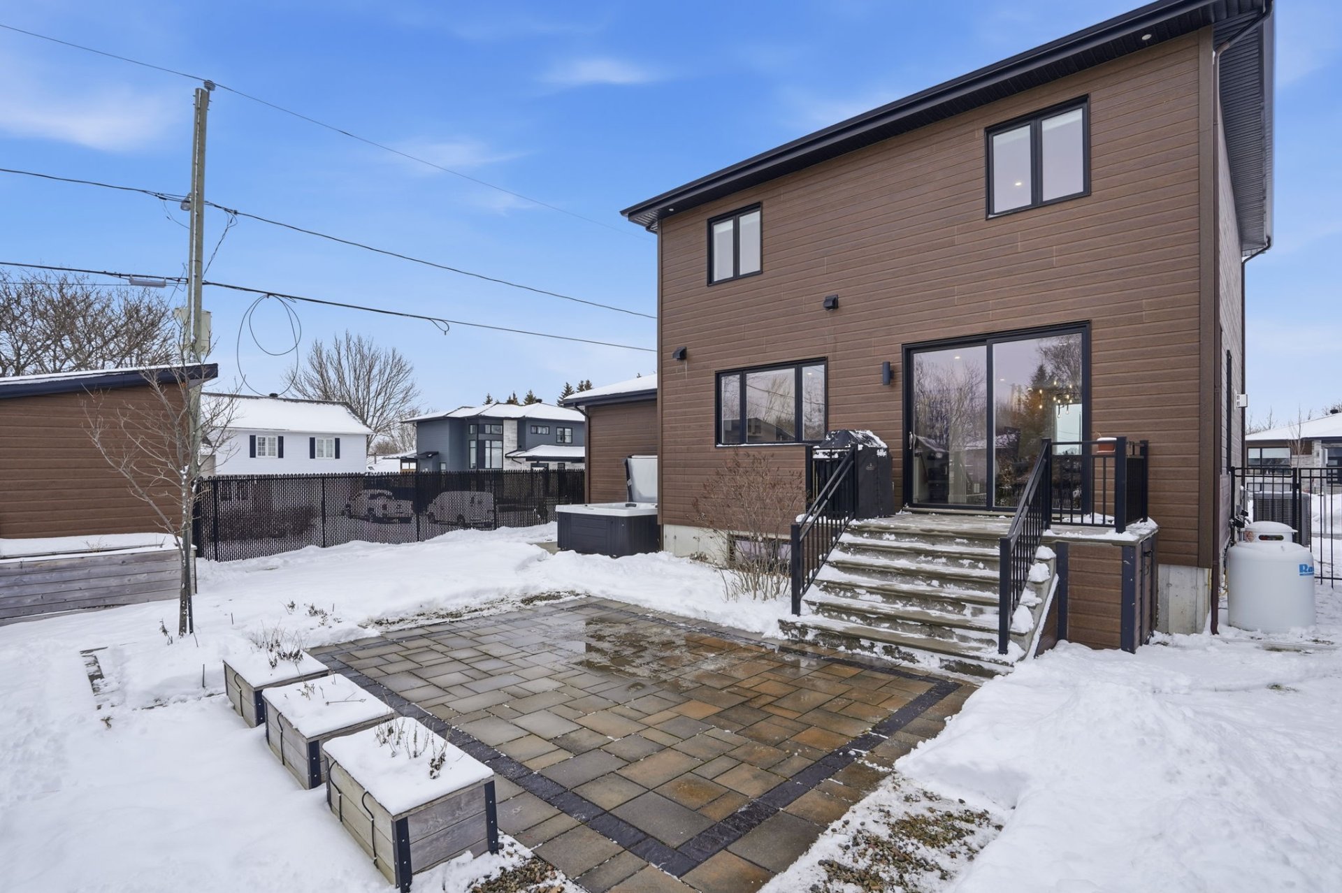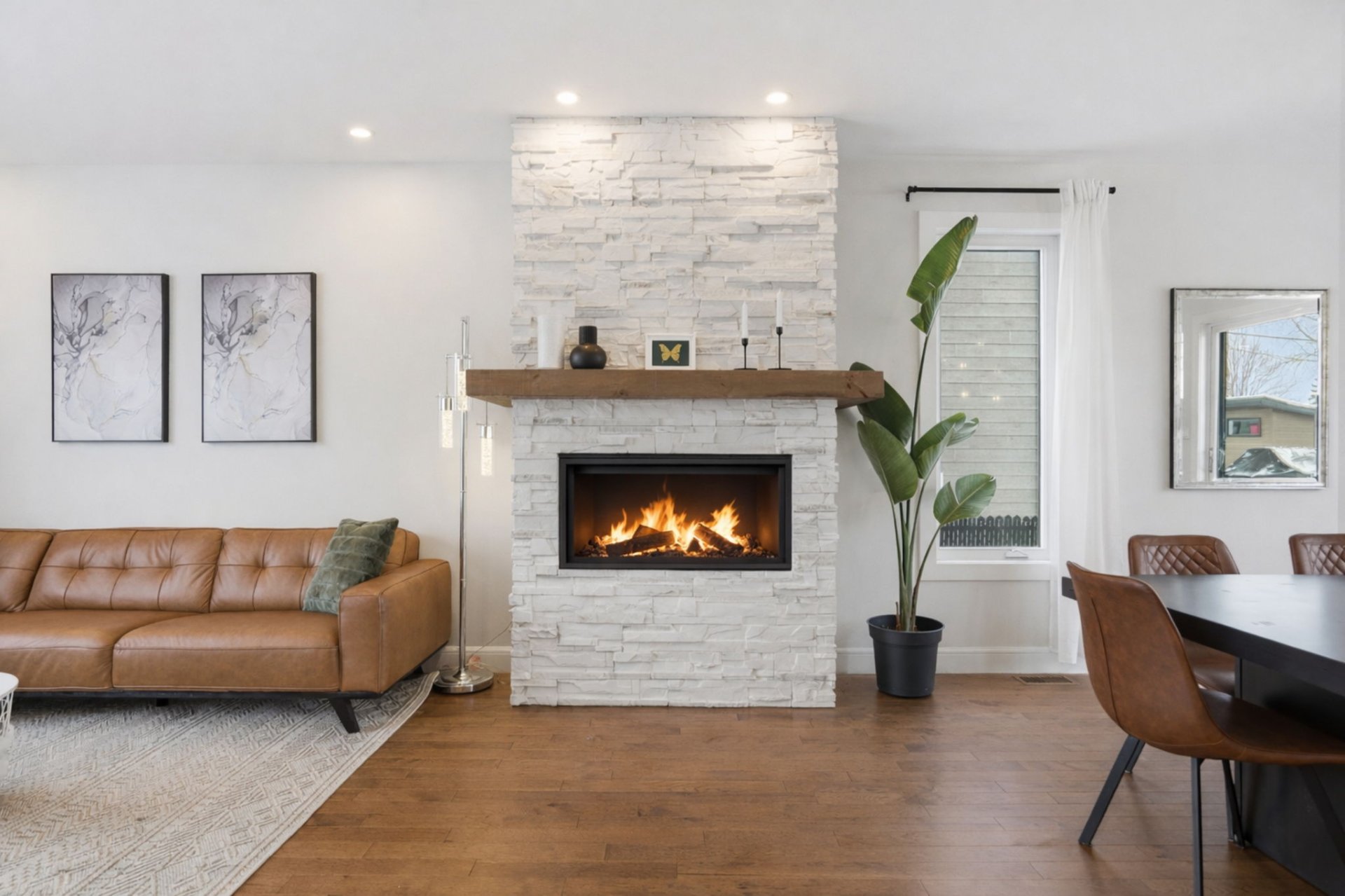 Discover this stunning contemporary property built in 2019, featuring 4 bedrooms, including a primary bedroom with a spacious walk-in closet, a sleek modern kitchen with quartz countertops and a large pantry, as well as a central gas fireplace that adds warmth and elegance to the living spaces. The 9-foot ceilings, bright open-concept layout, and fully finished basement with a bathroom added in 2024 create a welcoming and versatile living environment, ideal for family life and entertaining. Outside, enjoy a private, fenced yard enhanced by a concrete balcony and a spa area.