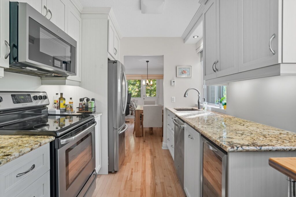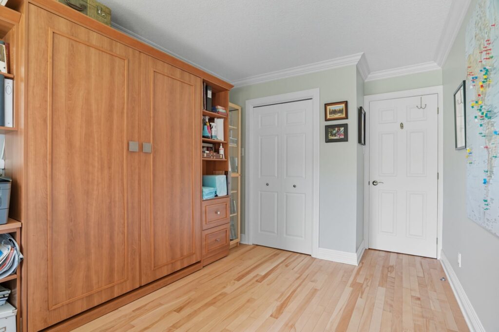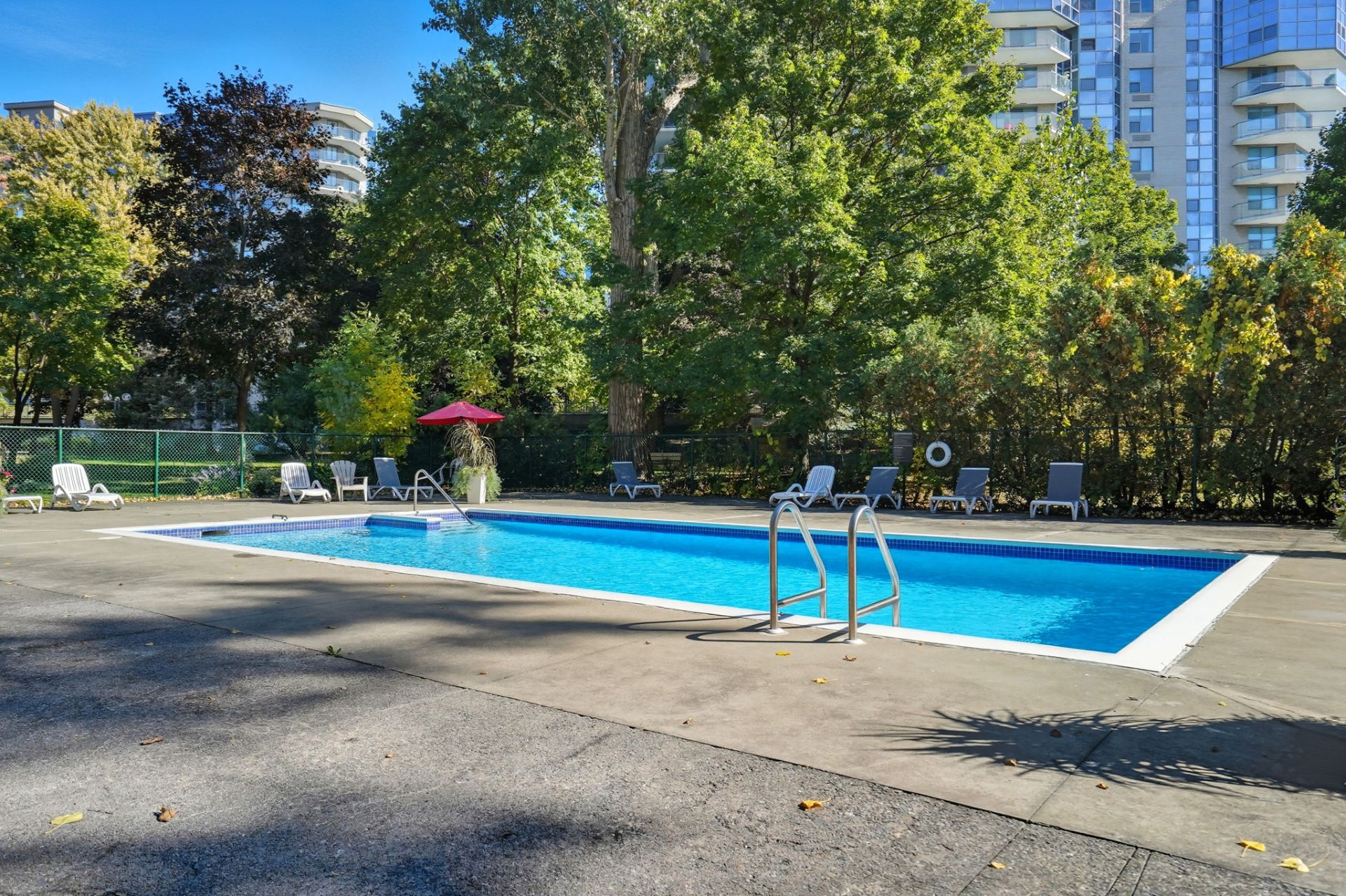 Charming and bright 2-bedroom condo located on the ground floor, with a private balcony and indoor parking included. The modern kitchen, renovated in 2011, features granite countertops, and the second bedroom is equipped with a Murphy bed–perfect for optimizing space. Several renovations have been carried out since 2011. A door from the dining room leads directly to the balcony, ideal for enjoying nice weather. The building is secure and well-maintained, offering a heated saltwater pool and large green spaces. Prime location, close to the bridges, “Le Country Club de Montréal” golf course, the marina, and bike paths.