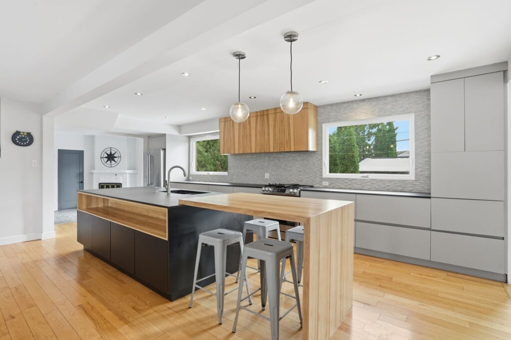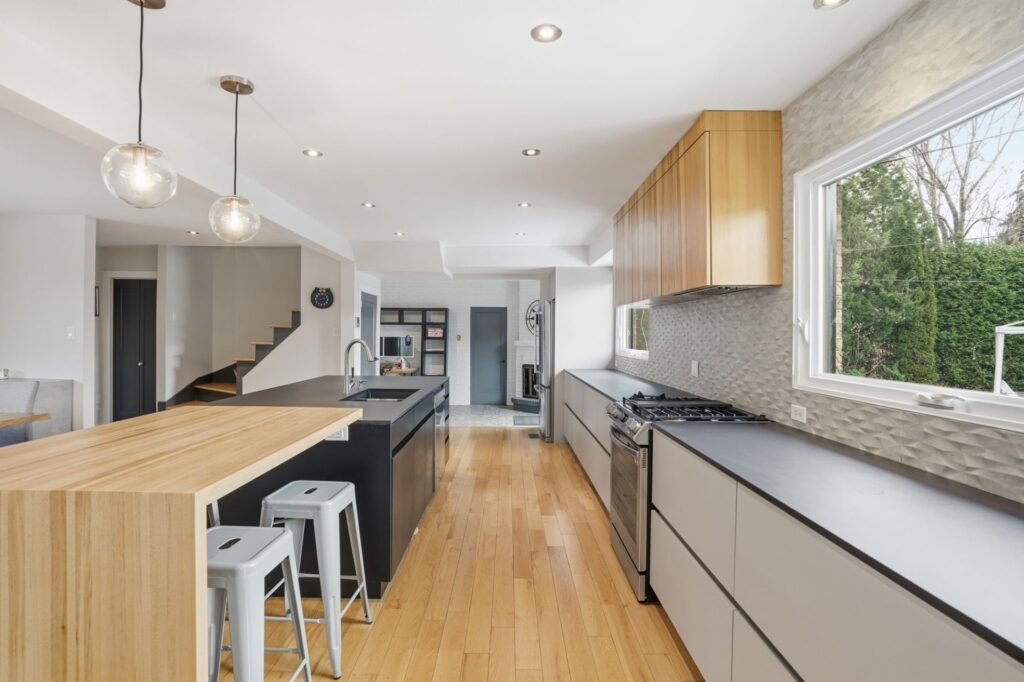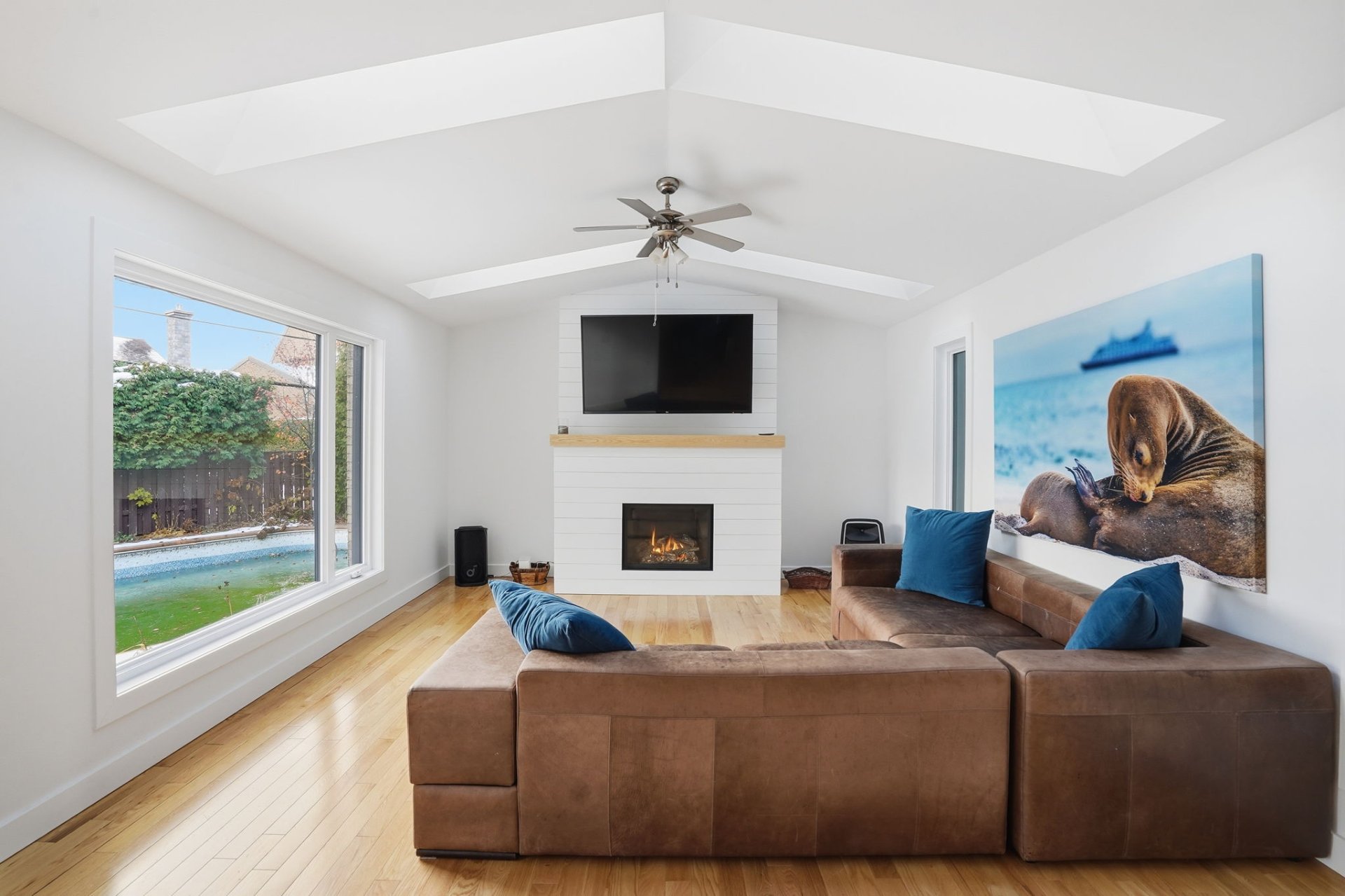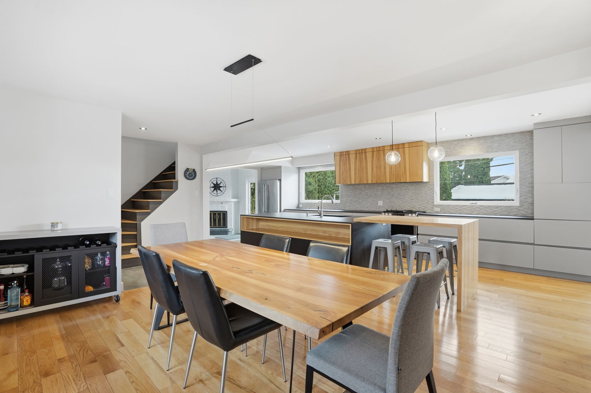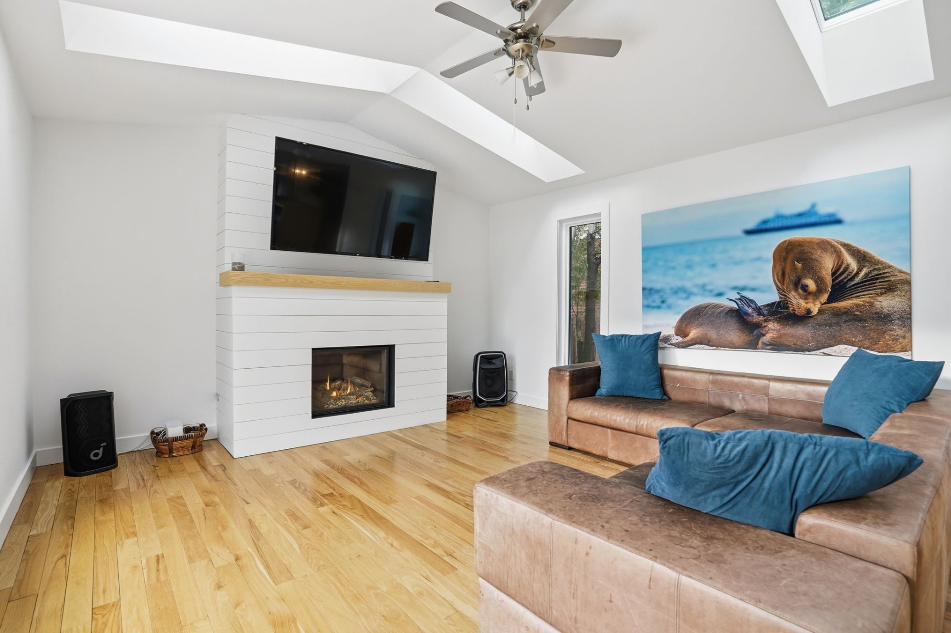 Vous y découvrirez une cuisine sur-mesure d’une qualité exceptionnelle avec un comptoir en dekton, un élément rare sur le marché. À aire ouverte, la grande salle à manger et le salon profitent d’un plafond cathédrale rehaussé de quatre puits de lumière ainsi que d’une porte donnant accès à l’extérieur. Un foyer au gaz complète l’espace, créant une ambiance chaleureuse et invitante.