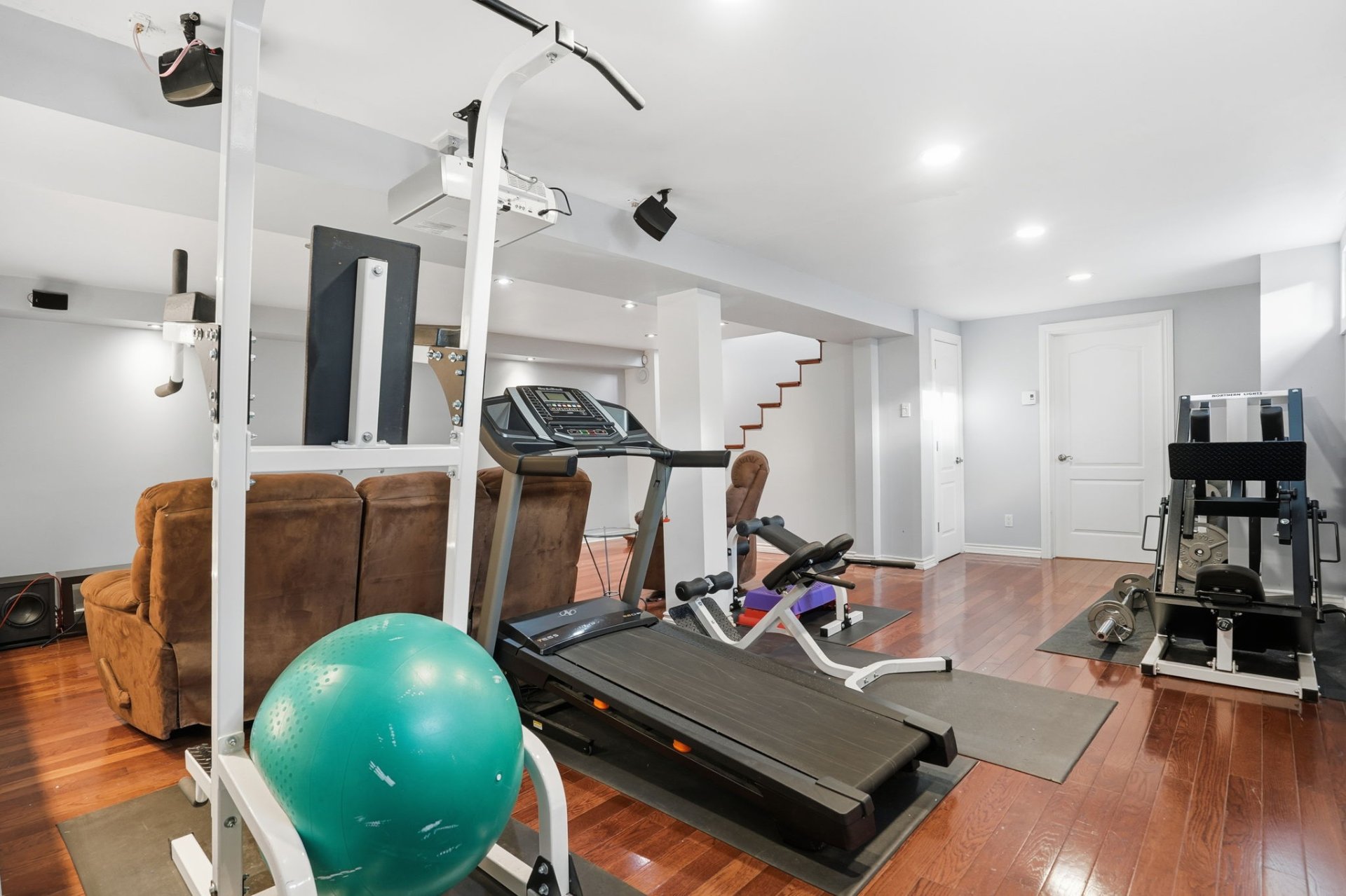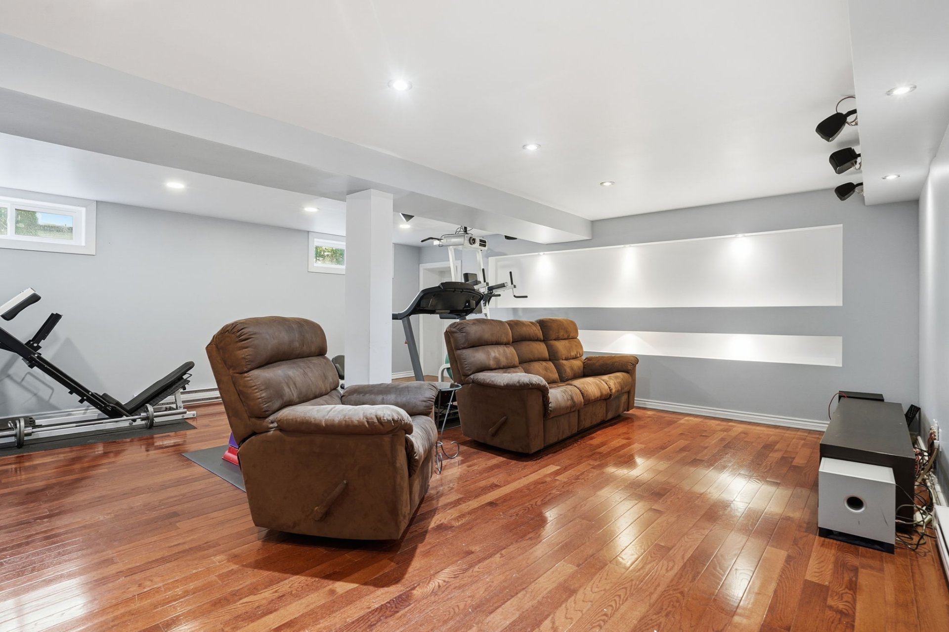 Le sous-sol entièrement aménagé offre une vaste salle familiale, une quatrième chambre spacieuse, un grand espace de rangement, ainsi qu’une deuxième salle de bain avec douche.