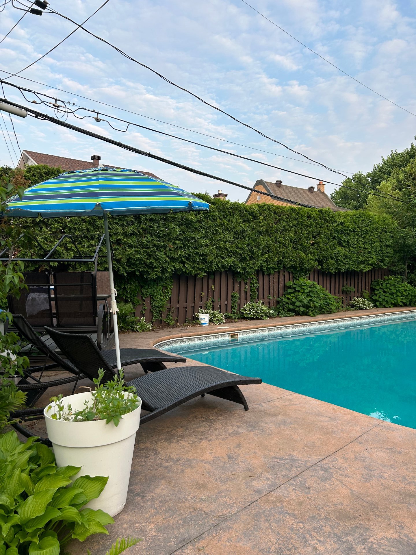 À l’extérieur, vous serez conquis par la magnifique cour arrière, un véritable havre de paix soigneusement aménagé avec plusieurs variétés de fleurs et une belle piscine creusée. Une grande terrasse en bois au sol, surmontée d’un gazebo, offre l’espace idéal pour recevoir, relaxer ou profiter pleinement des belles journées d’été.