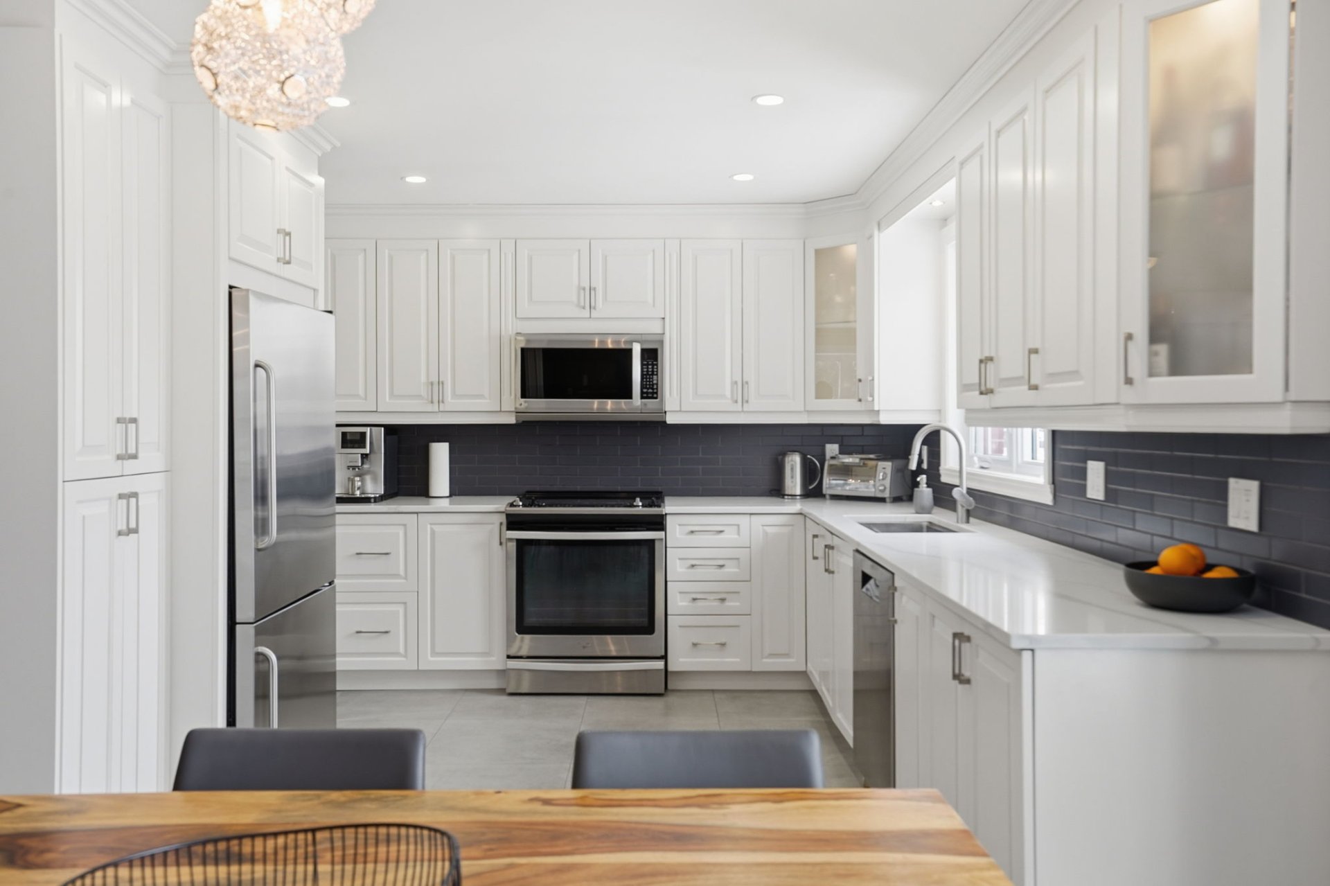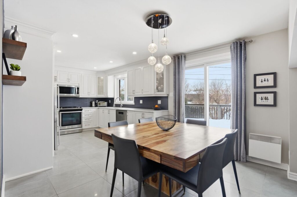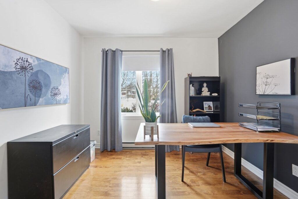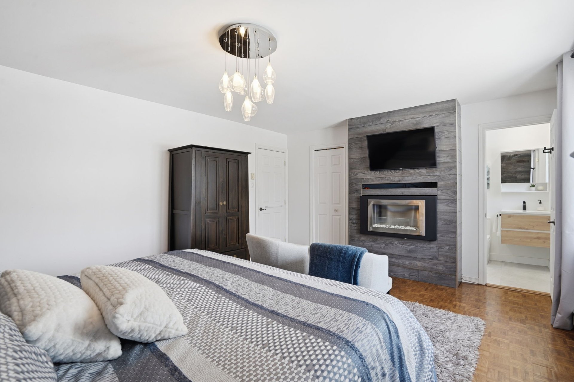 Le rez-de-chaussée propose des pièces bien définies, favorisant une circulation fluide et agréable. Le salon est baigné de lumière naturelle grâce à sa baie-window. La salle familiale à contre bas, offre une atmosphère conviviale, mise en valeur par un foyer au bois à combustion lente, idéal pour un confort optimal en toute saison et donnant accès à la cour par la porte-patio. La cuisine, rénovée en 2020, se démarque par ses comptoirs en quartz et ses armoires rafraîchies la même année, offrant un espace élégant et fonctionnel. Une pièce polyvalente à ce niveau peut être aménagée en bureau, chambre ou salle de jeux, en plus d’un espace pour la laveuse et sécheuse.