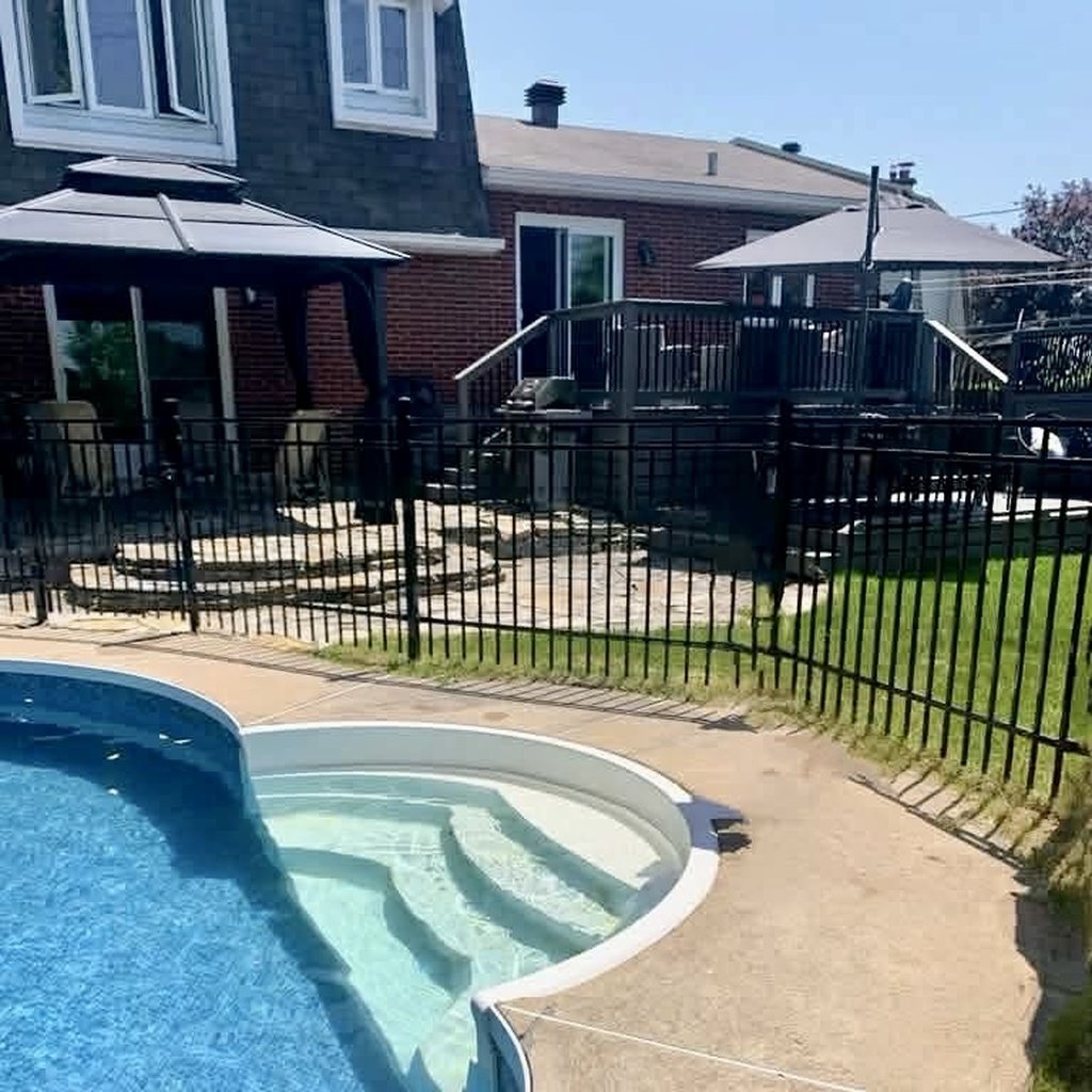 À l’extérieur, la propriété séduit par sa grande cour aménagée avec balcon arrière refait en composite en 2021, une terrasse et une piscine creusée chauffée par panneaux solaires, dont la toile a été remplacée en 2022. L’installation de panneaux solaires en 2020 et la clôture de piscine de 2021 témoignent d’un souci constant d’optimisation et de sécurité.
