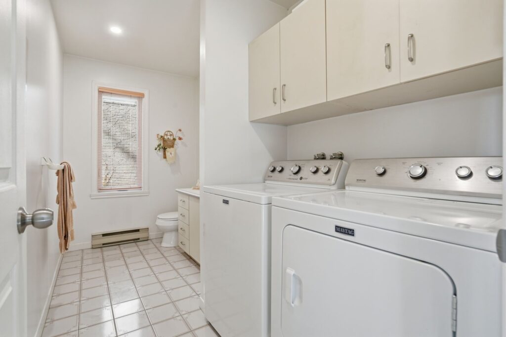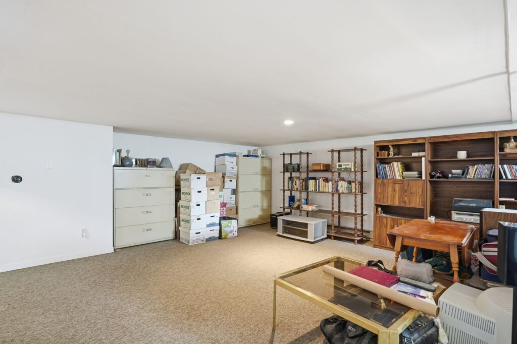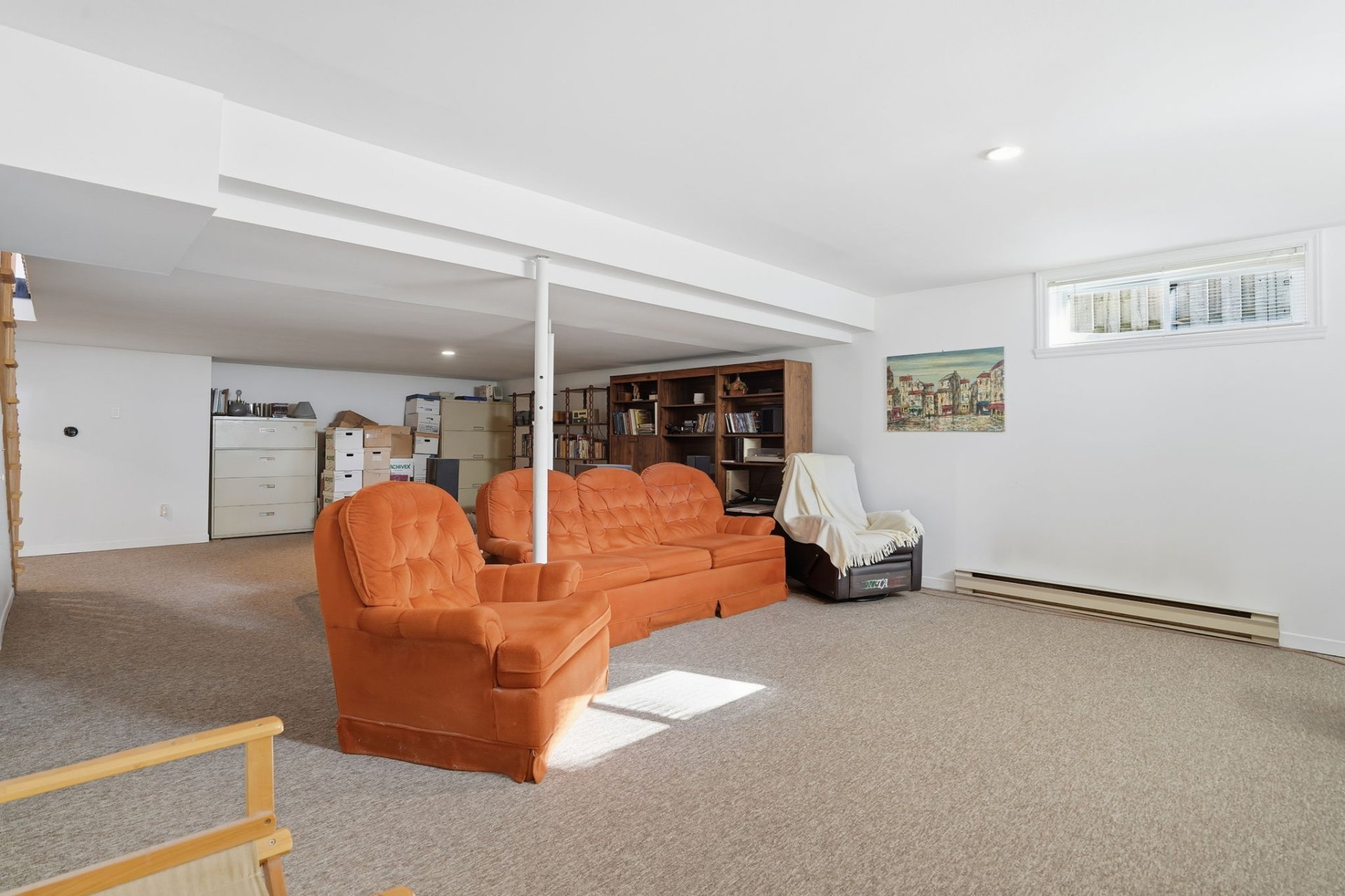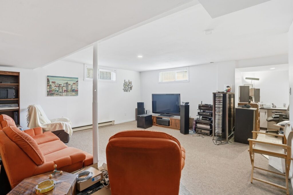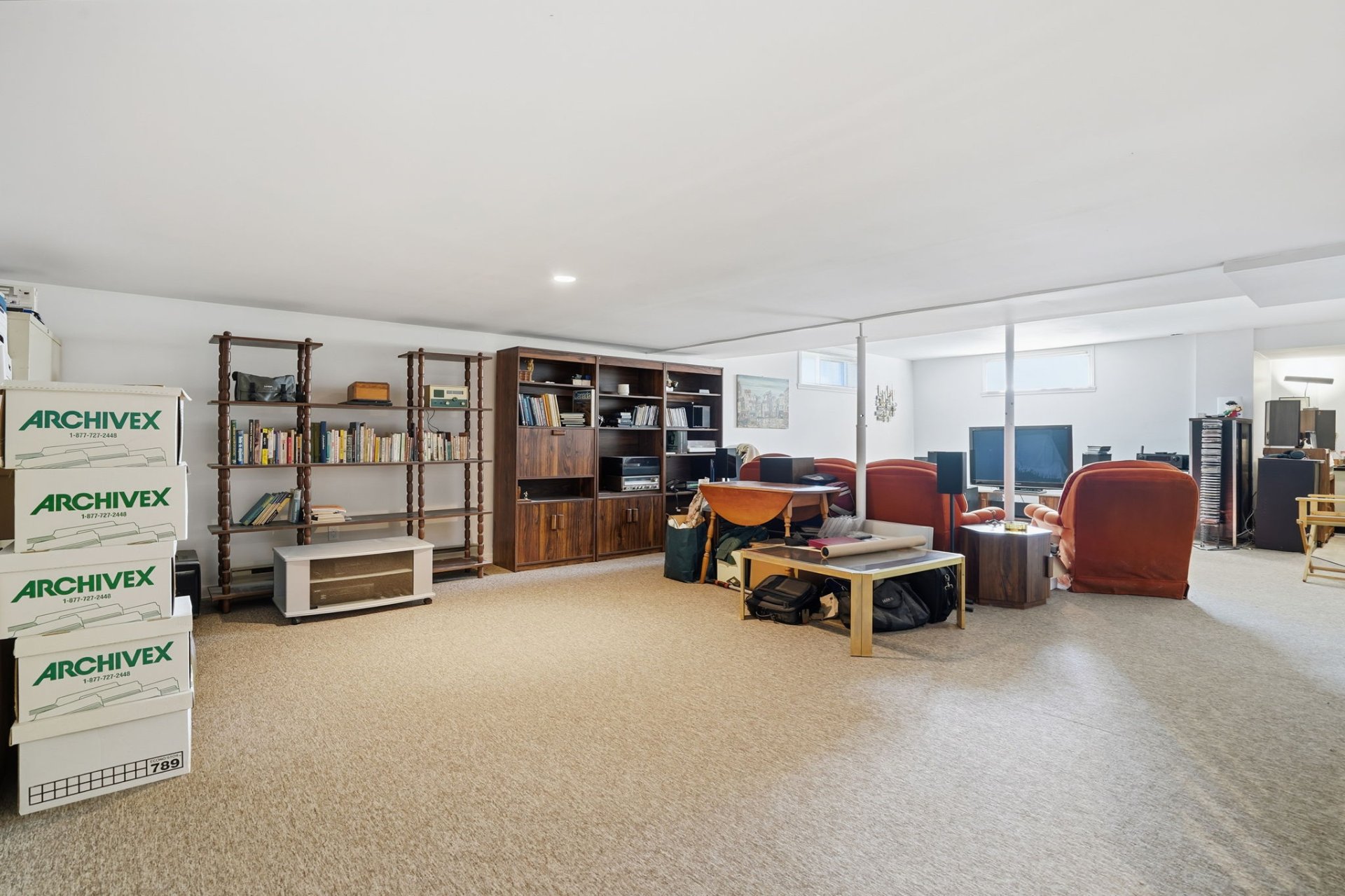 Le sous-sol entièrement aménagé propose une vaste salle familiale, parfaite pour une salle de jeux ou un cinéma maison, un grand espace de rangement et une pièce supplémentaire déjà munie de la plomberie nécessaire pour l’ajout d’une deuxième salle de bains.