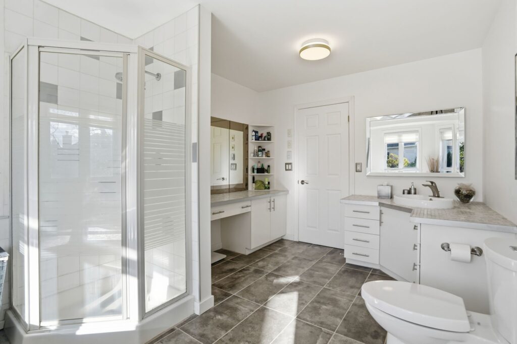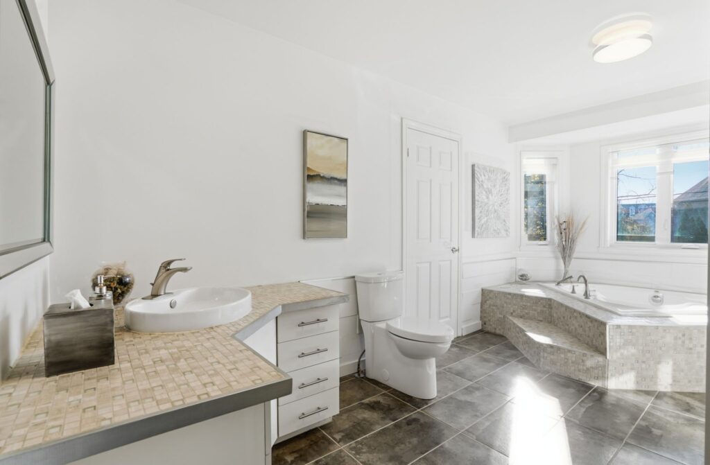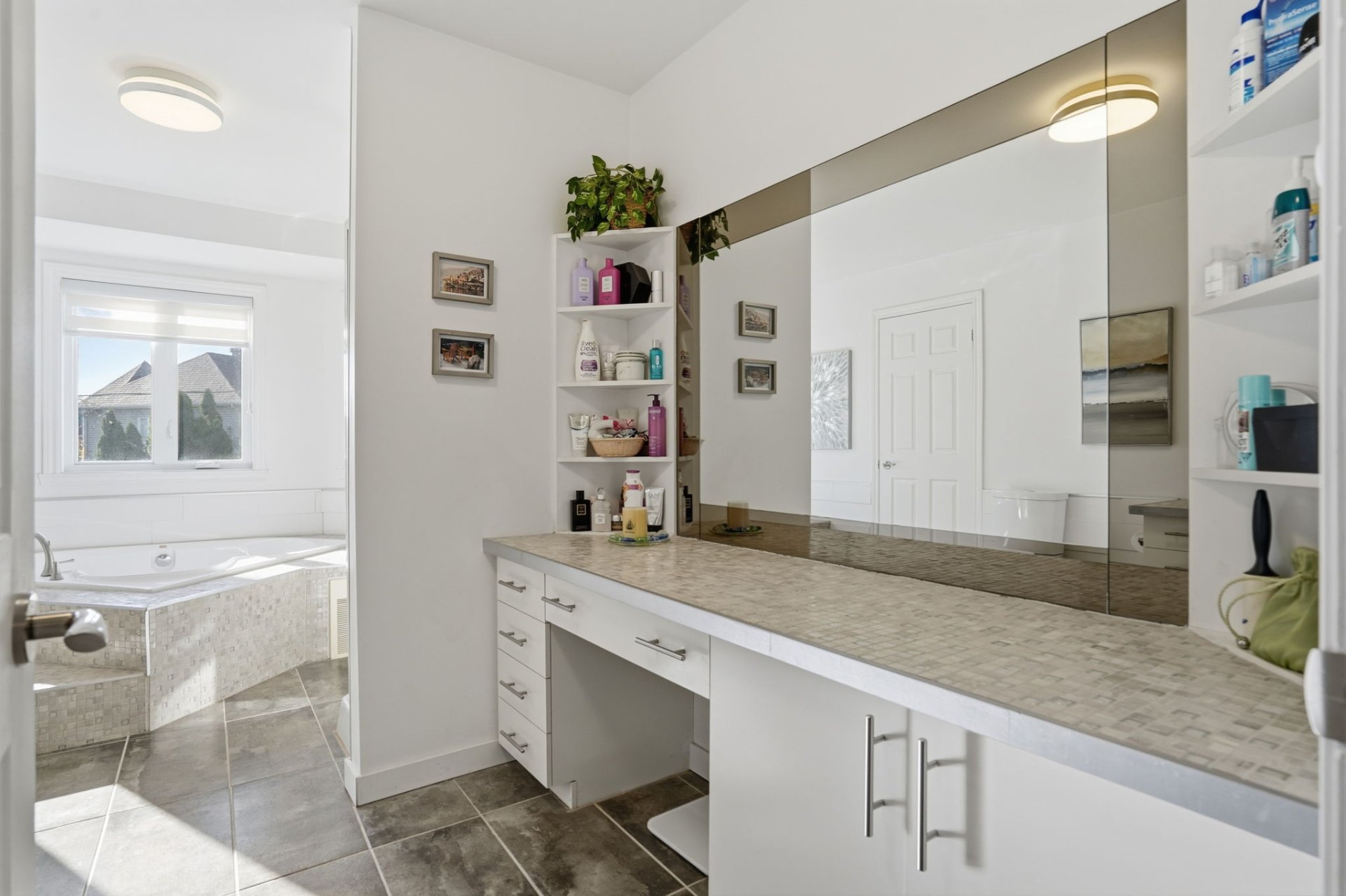 À l’étage, la maison comprend trois chambres spacieuses ainsi qu’une grande salle de bains avec douche et bain séparés, en plus d’un coin maquillage pratique.
