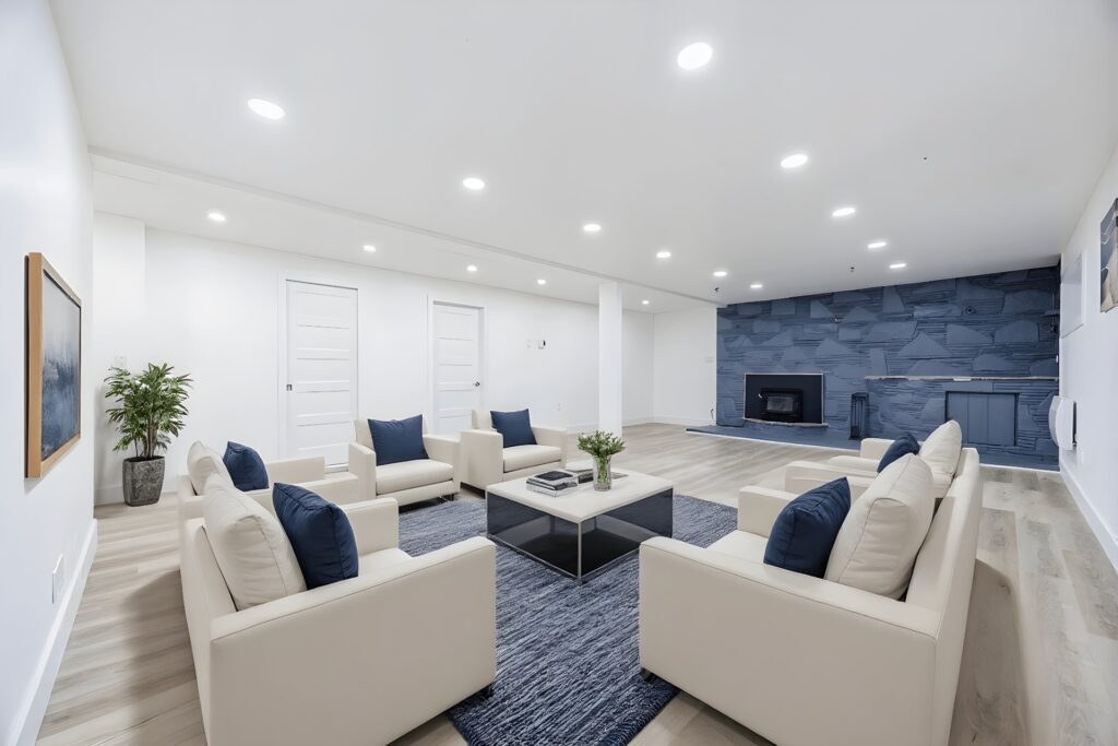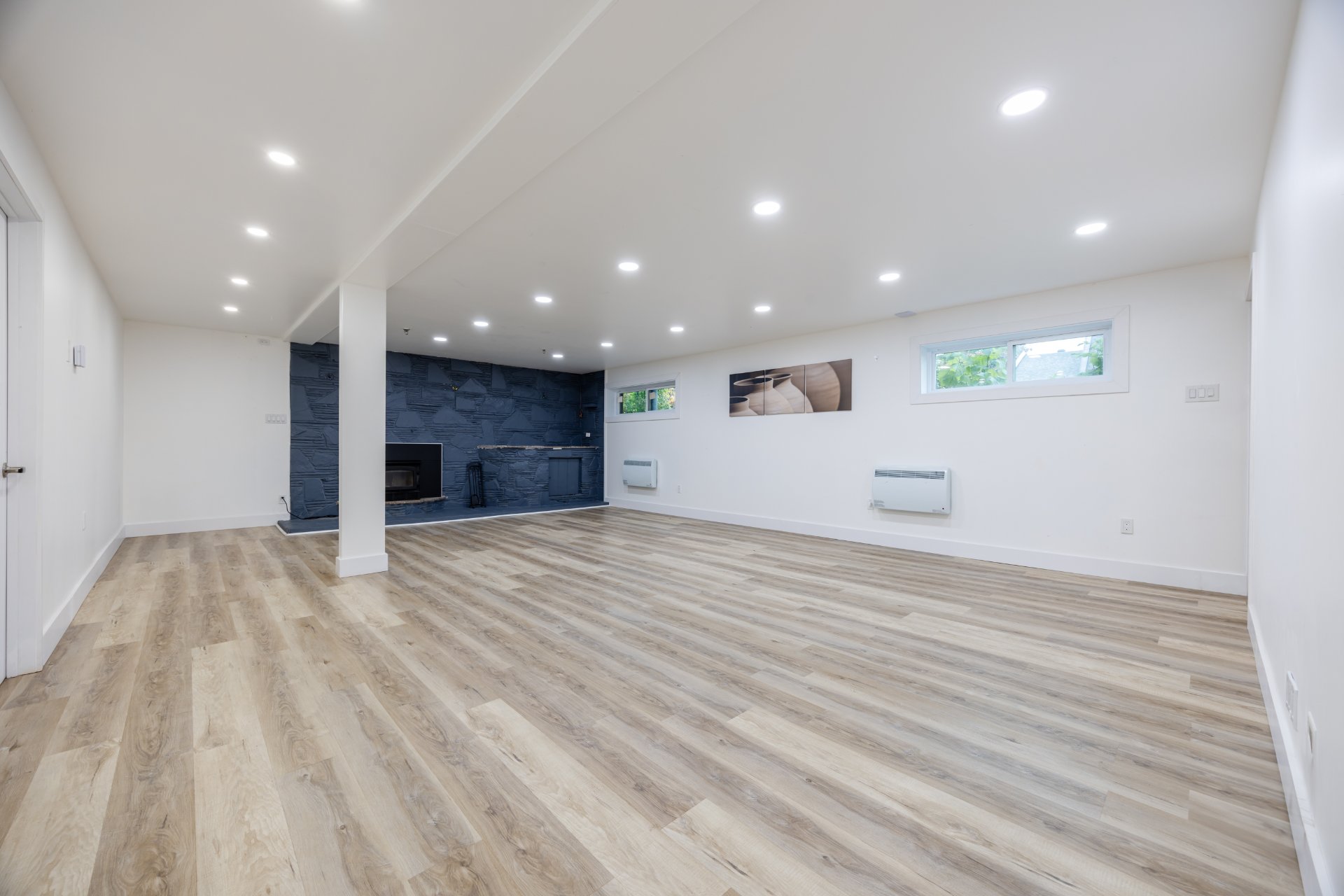 Le sous-sol entièrement aménagé propose une vaste salle familiale avec plancher chauffant et foyer au bois, idéale pour les soirées d’hiver. Vous y trouverez également une deuxième salle de bain complète, une quatrième chambre, un espace bureau ainsi qu’une petite cuisinette, offrant de multiples possibilités d’aménagement selon vos besoins.